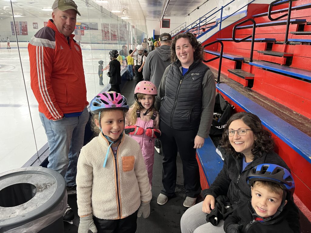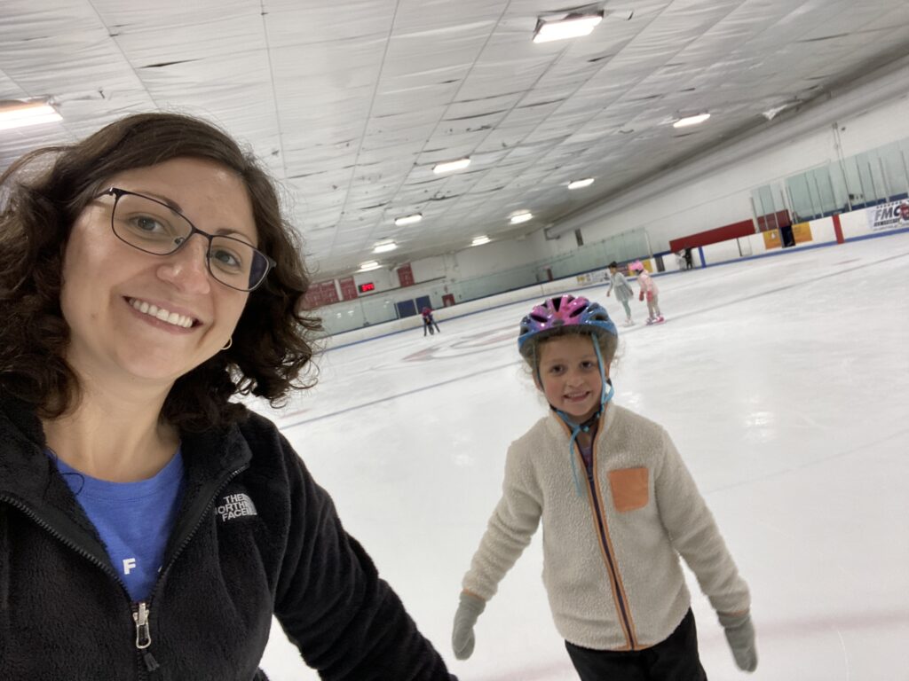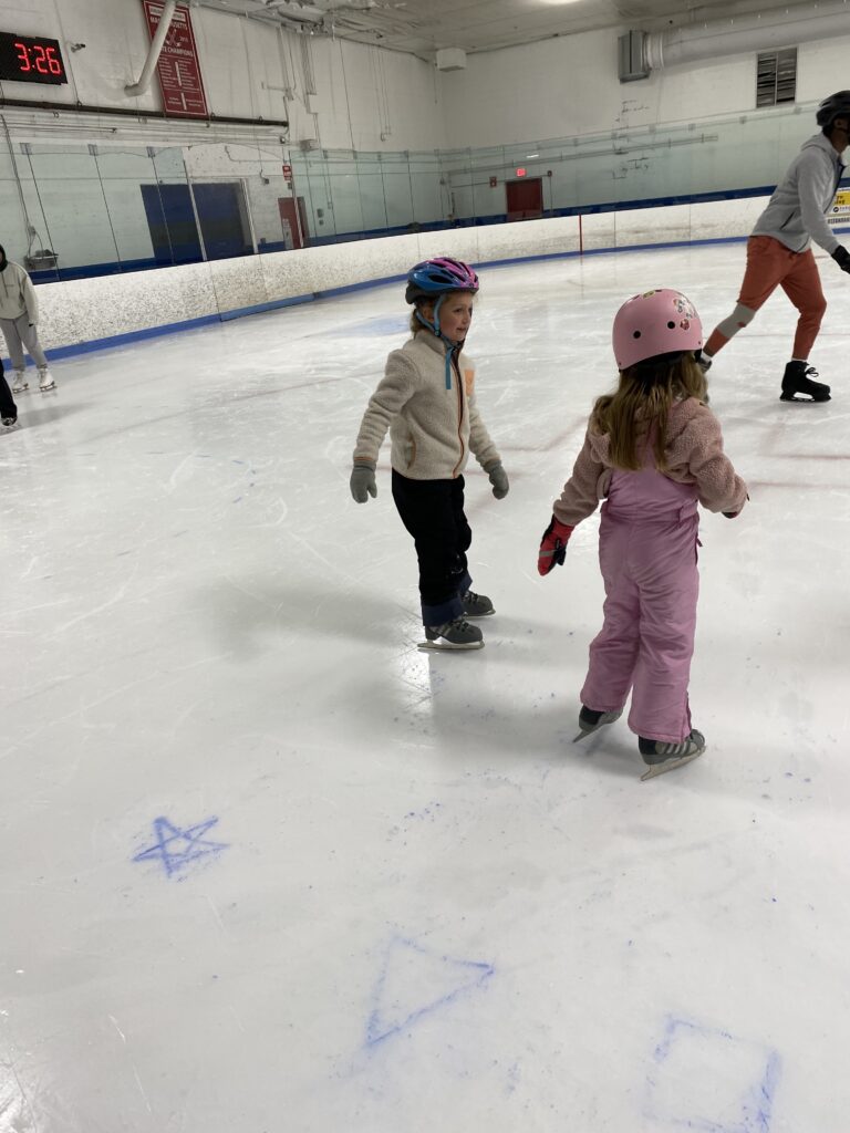 Gabby’s classmate, Caroline, invited us to join her family out on the ice. 🙂 What a great idea!