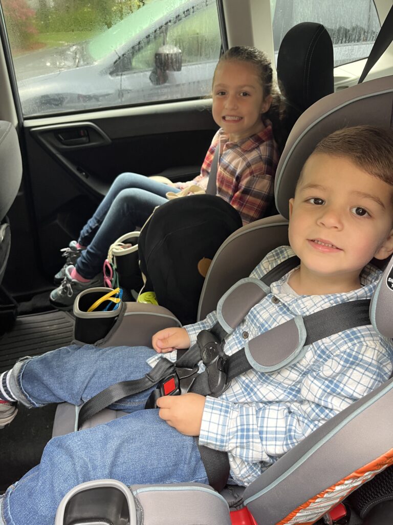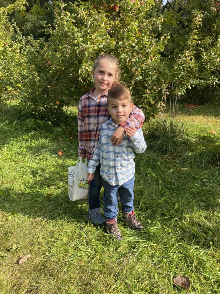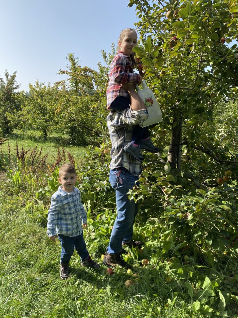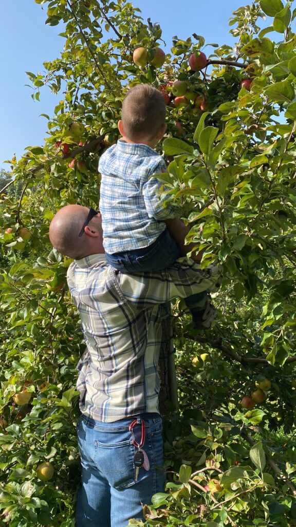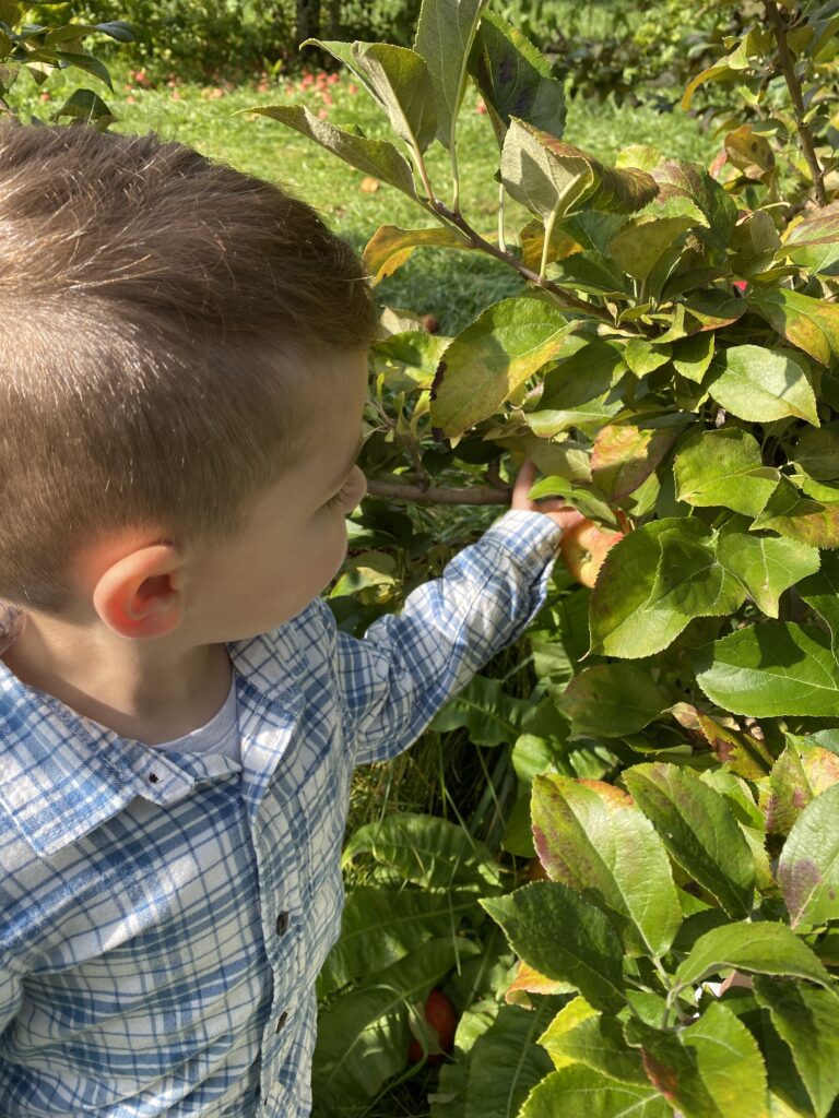 A short drive and we made it to the orchard. Sam was just tall enough to peek through lol