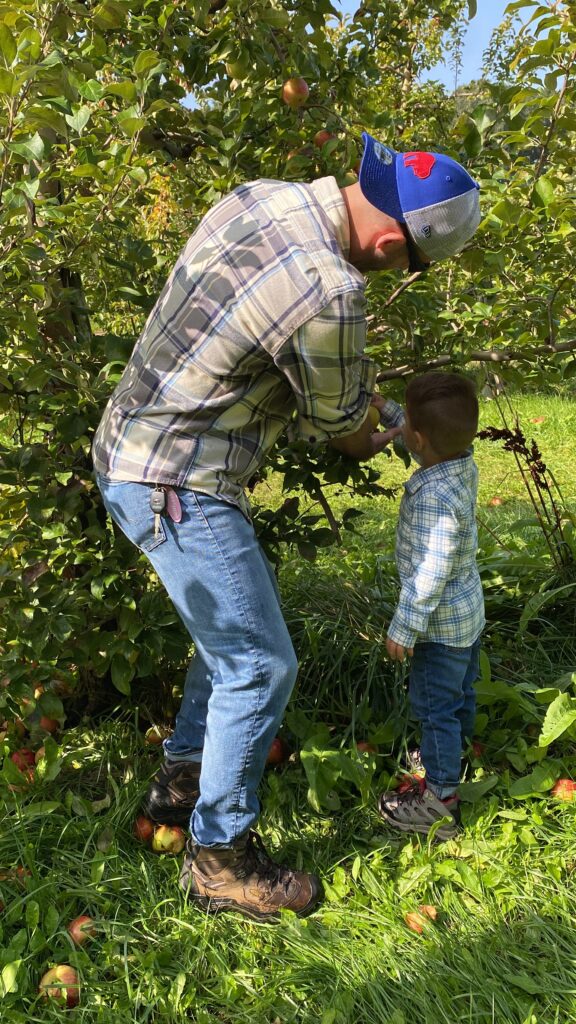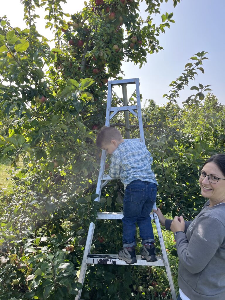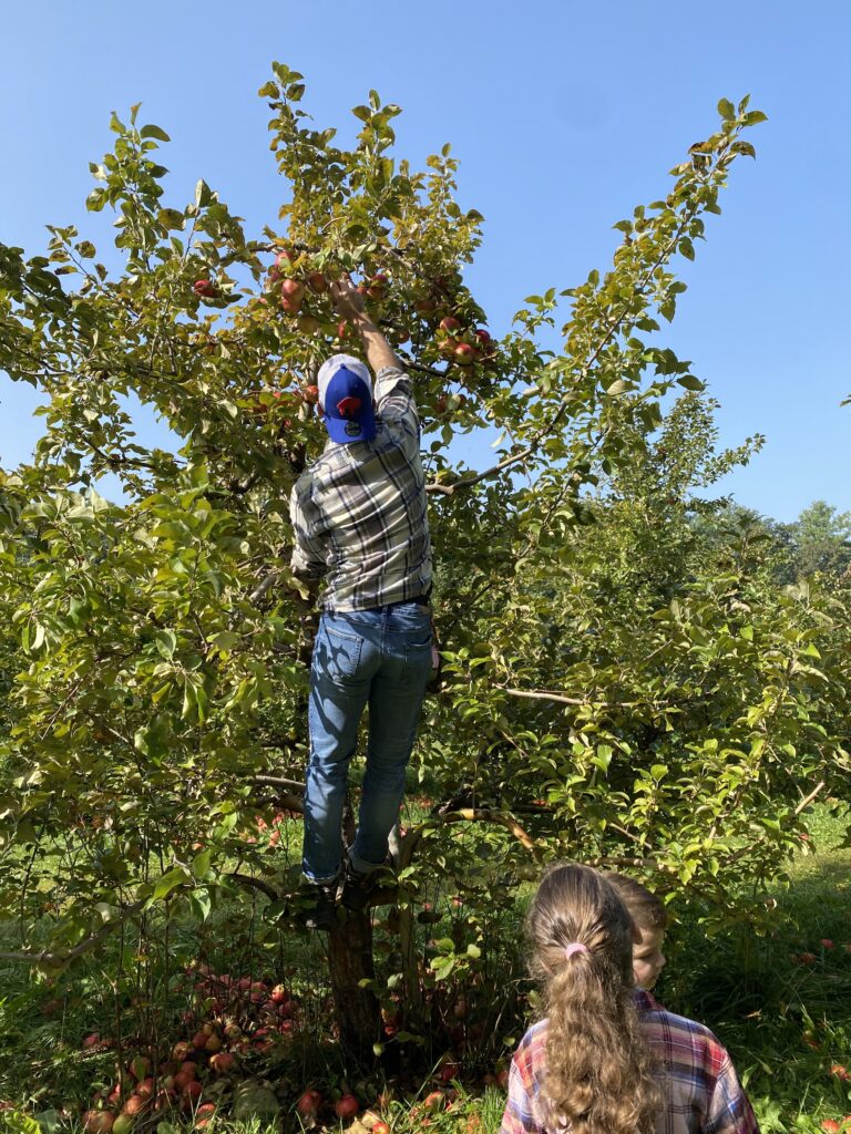 Unfortunately, most of the apples on the lower branches fell off due to some frost so we had to get creative. Shaun really wanted those Honey Crisps!