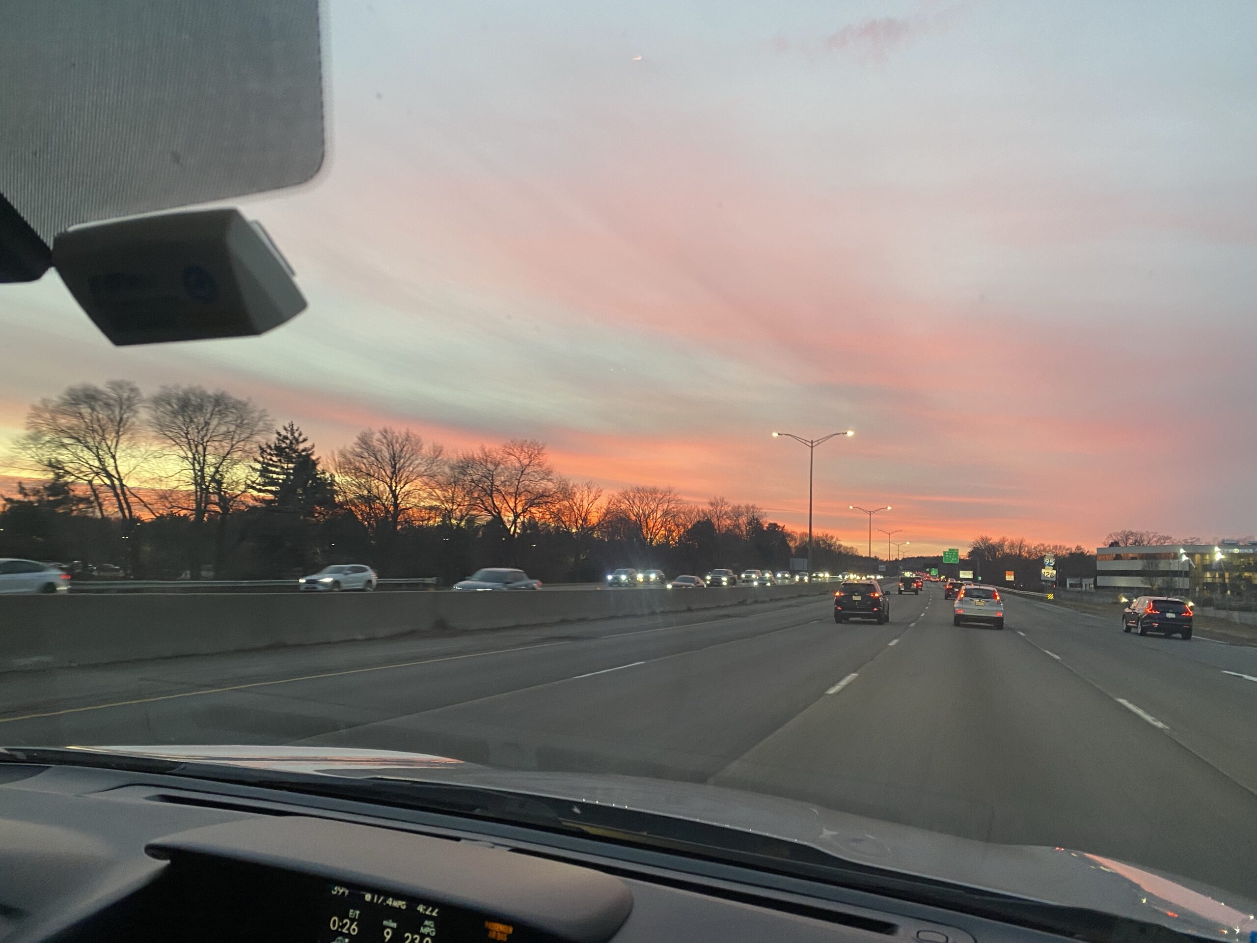 We all headed to a Gabby hockey game, where they won! (Not pictured.) Daniela caught a nice sunset on our way home.