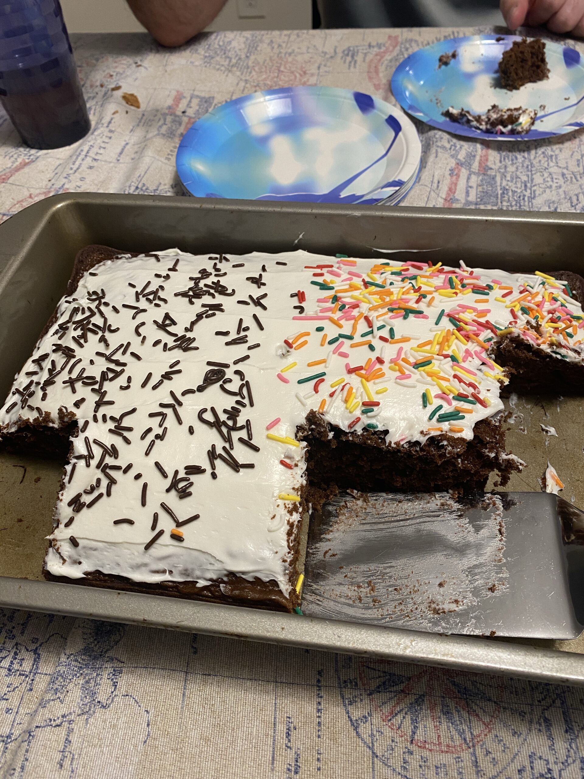 The kids helped make a nice chocolate cake.
