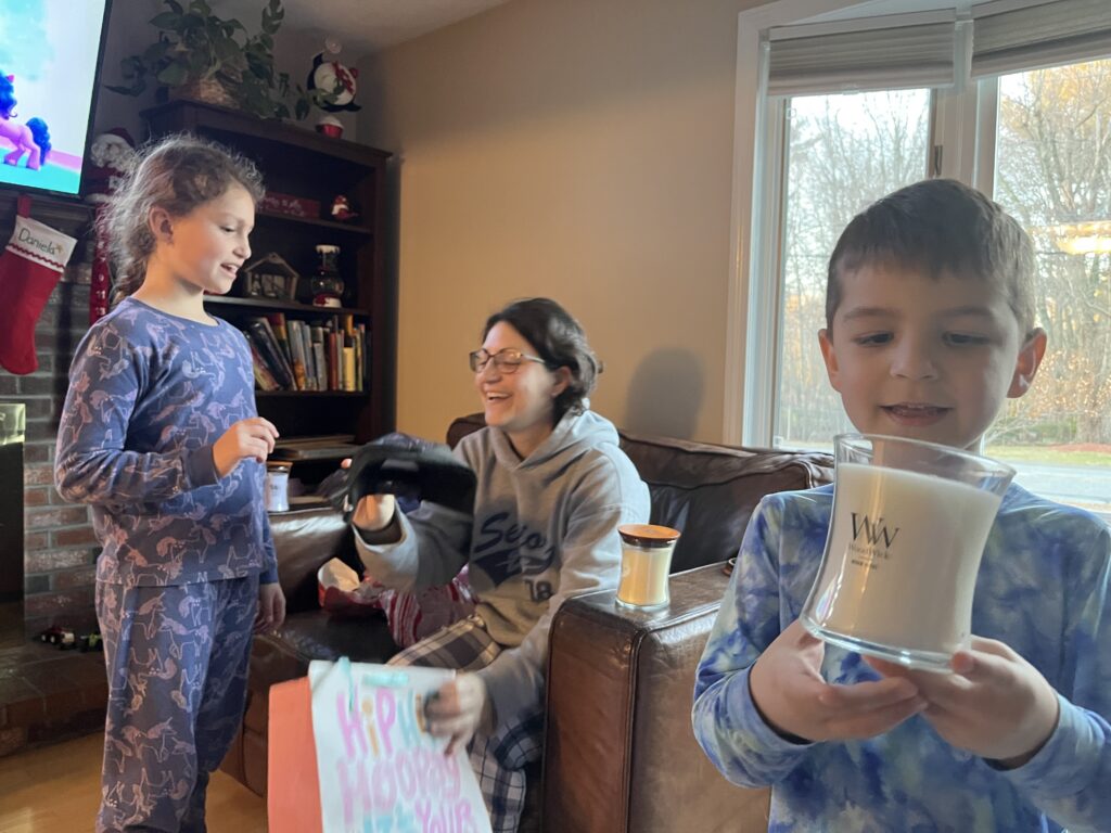 The kids carried on their tradition of Woodwick candles.