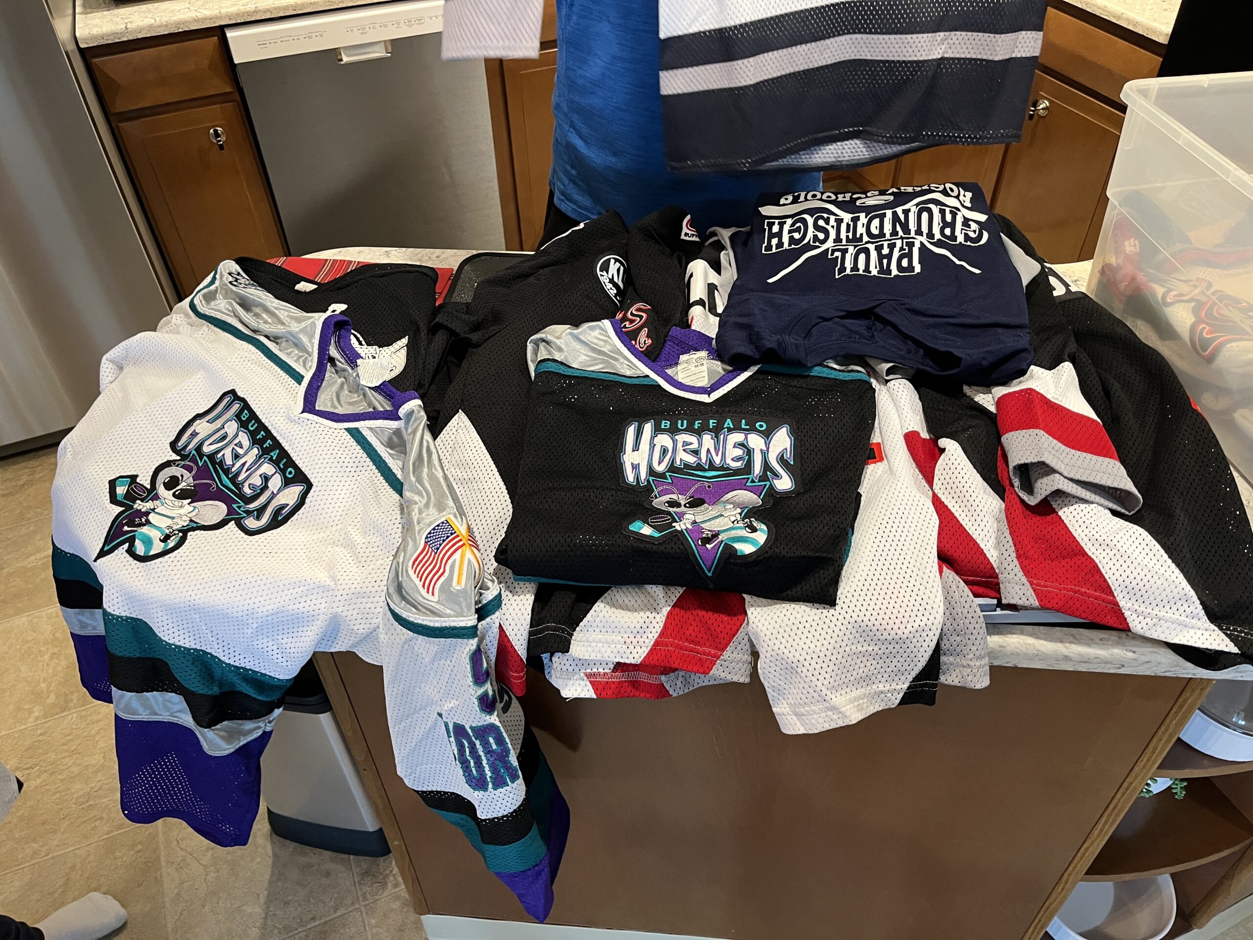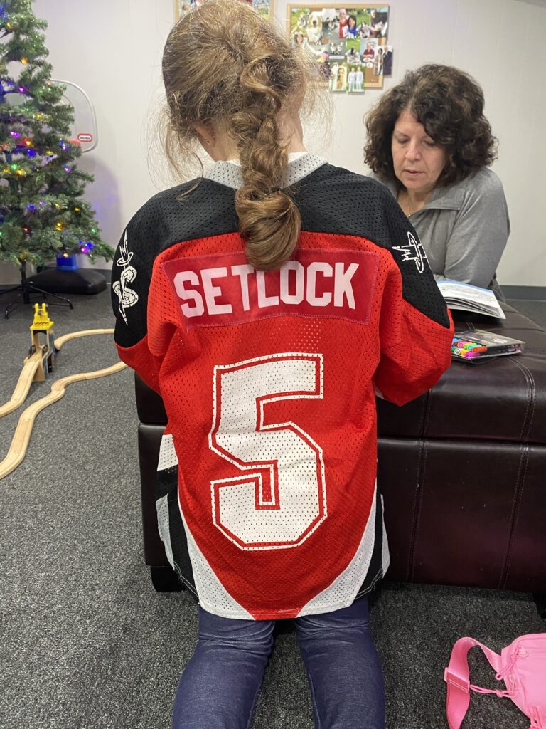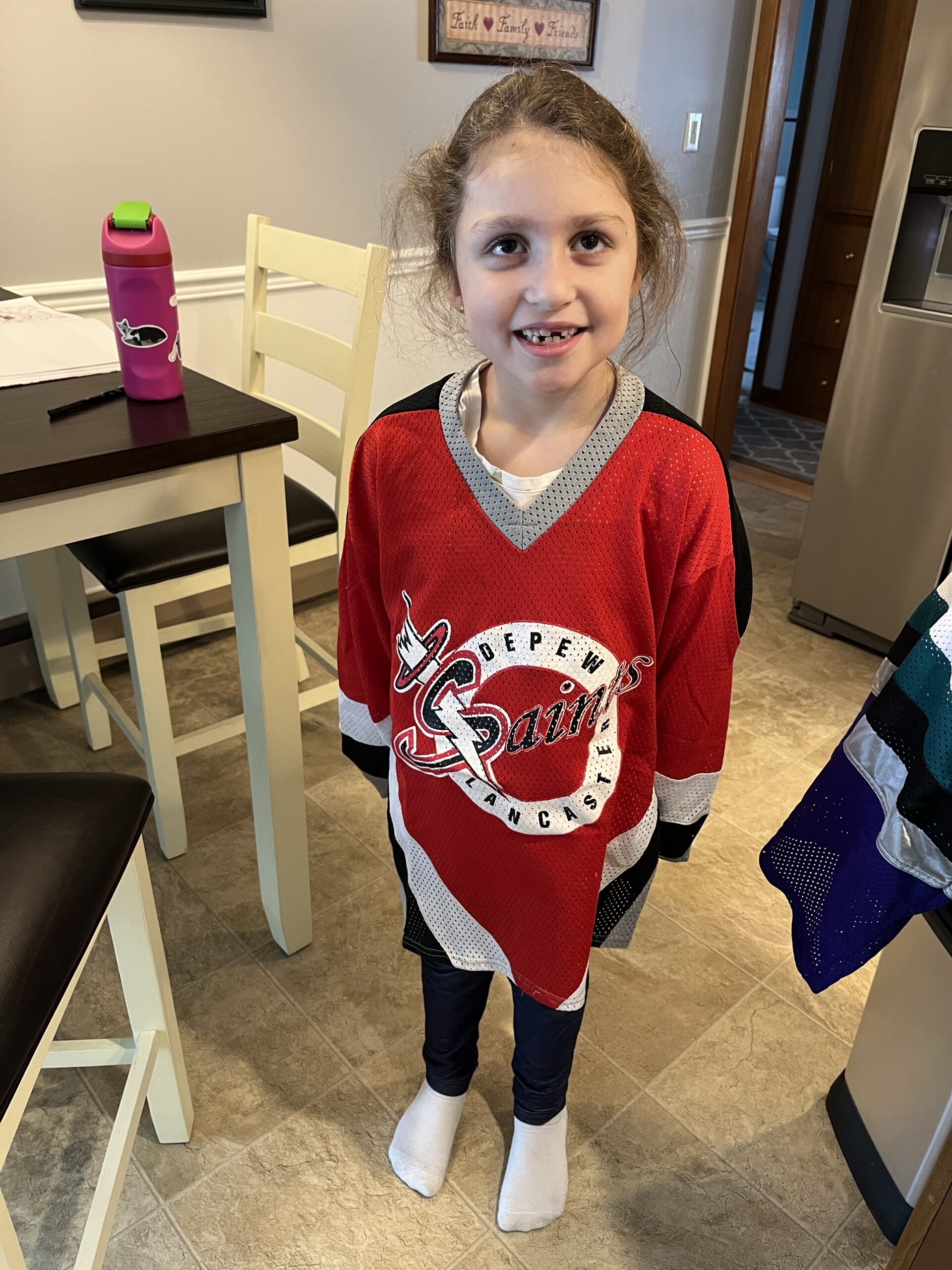 Grammie and Papa pulled out some of Shaun’s old hockey jerseys and Gabby got to take one home 🥰