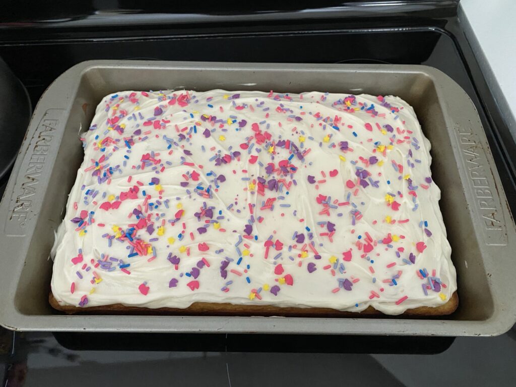 Daddy’s birthday cake! Gabby picked out the sprinkles 😂. Yes those are unicorns.