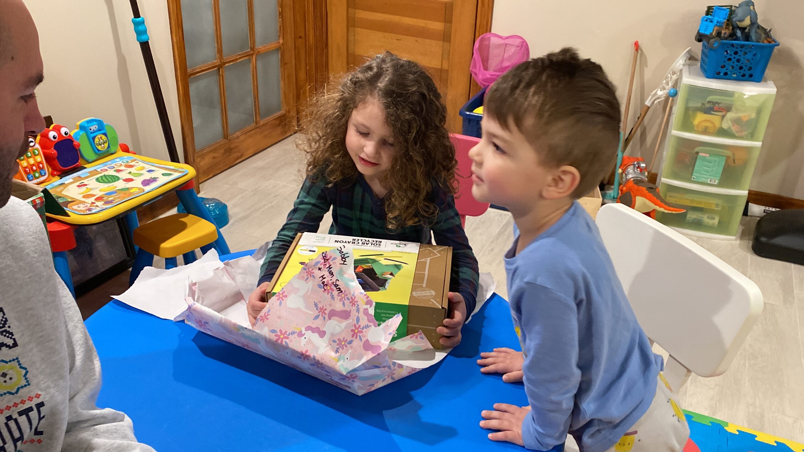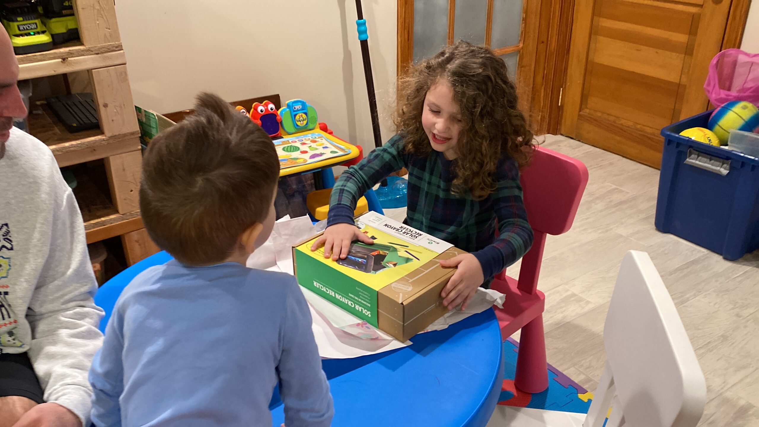 Thank you for the awesome rocket toy and Harry Potter book (not pictured), Aunt Julia!