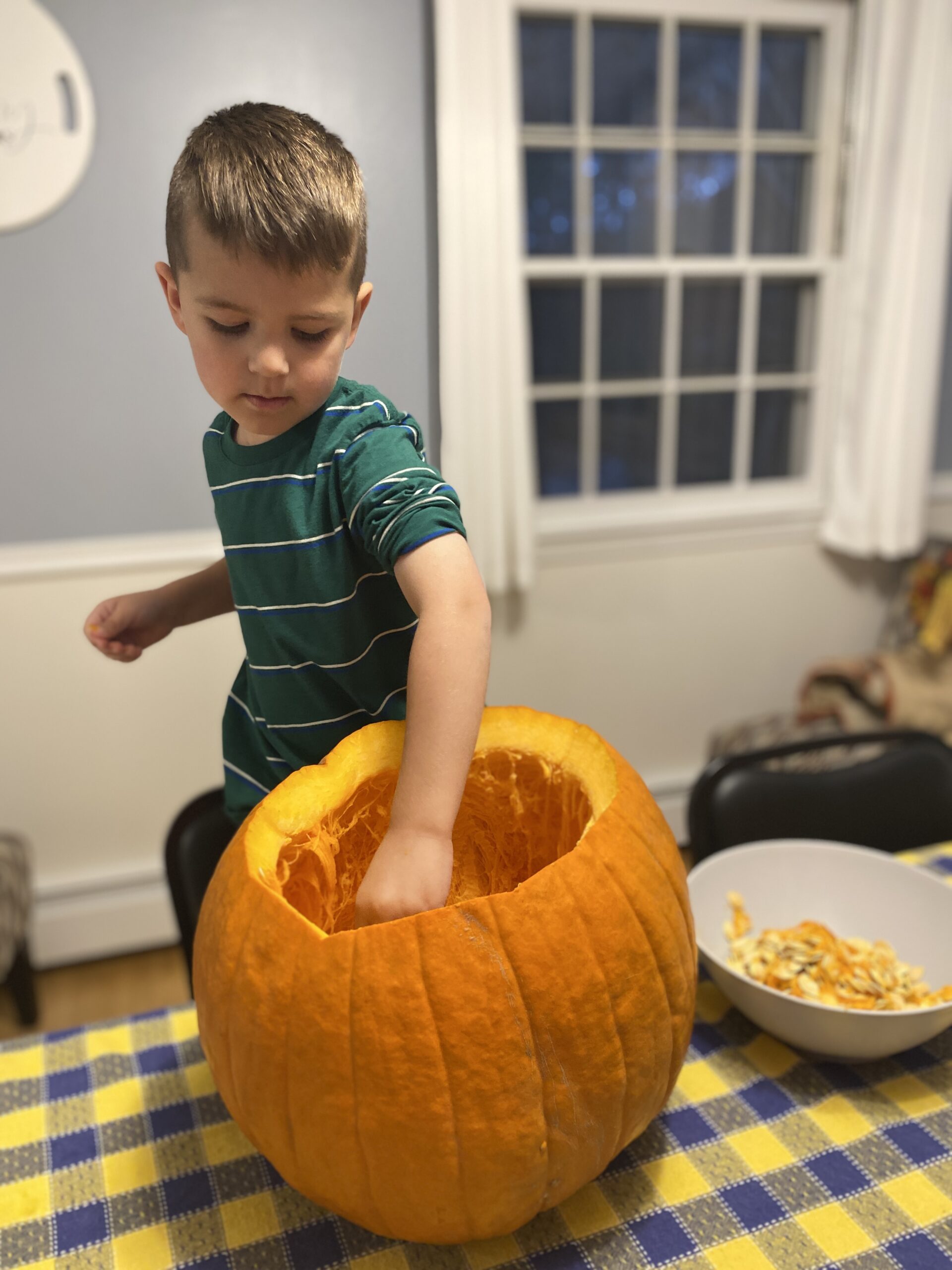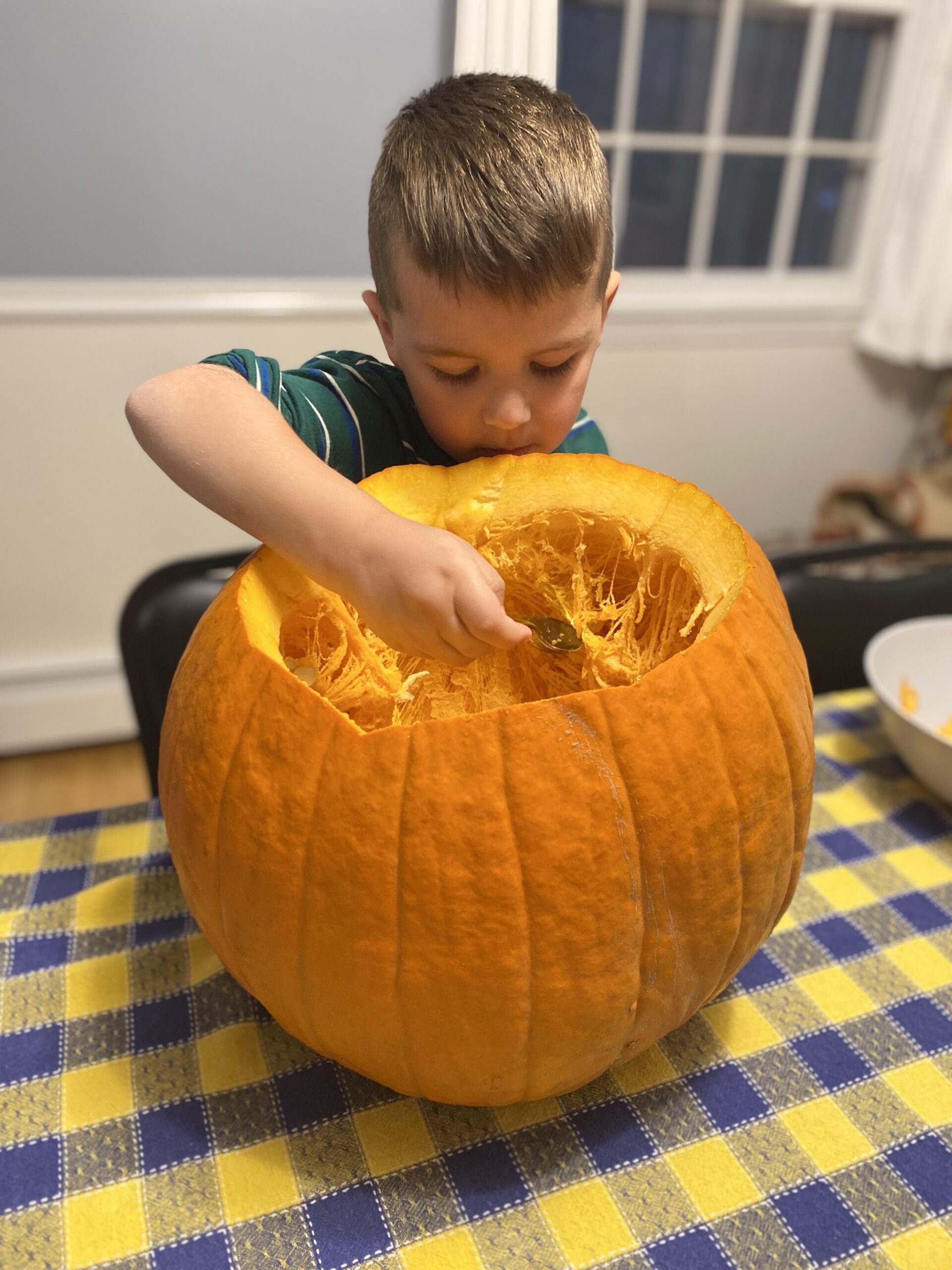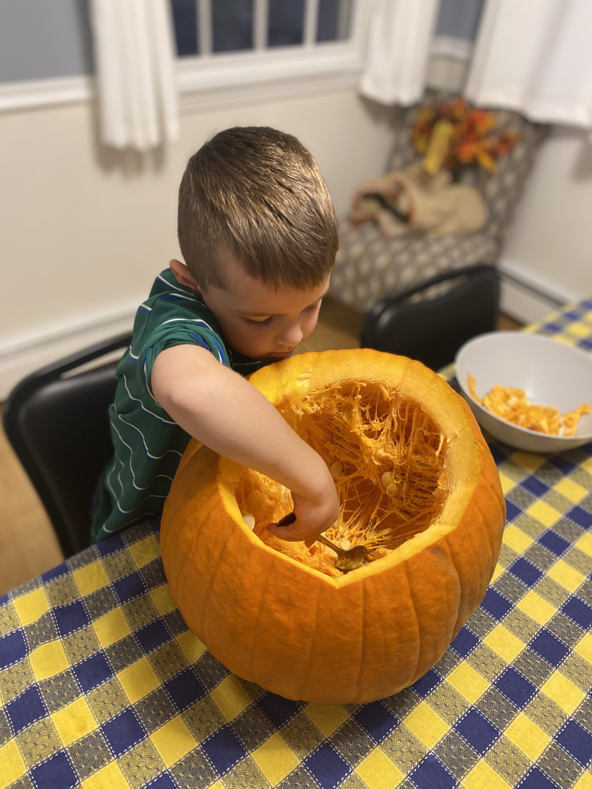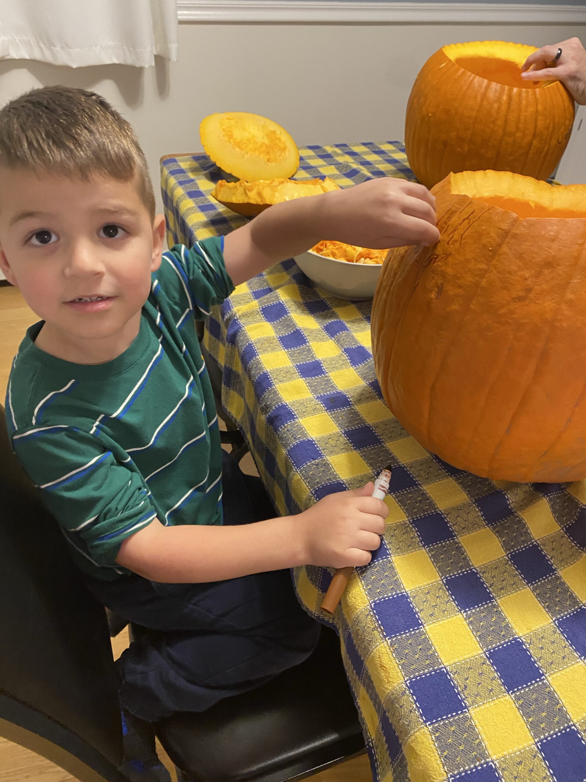 He drew his own face on the pumpkin and really liked how it turned out. 🙂