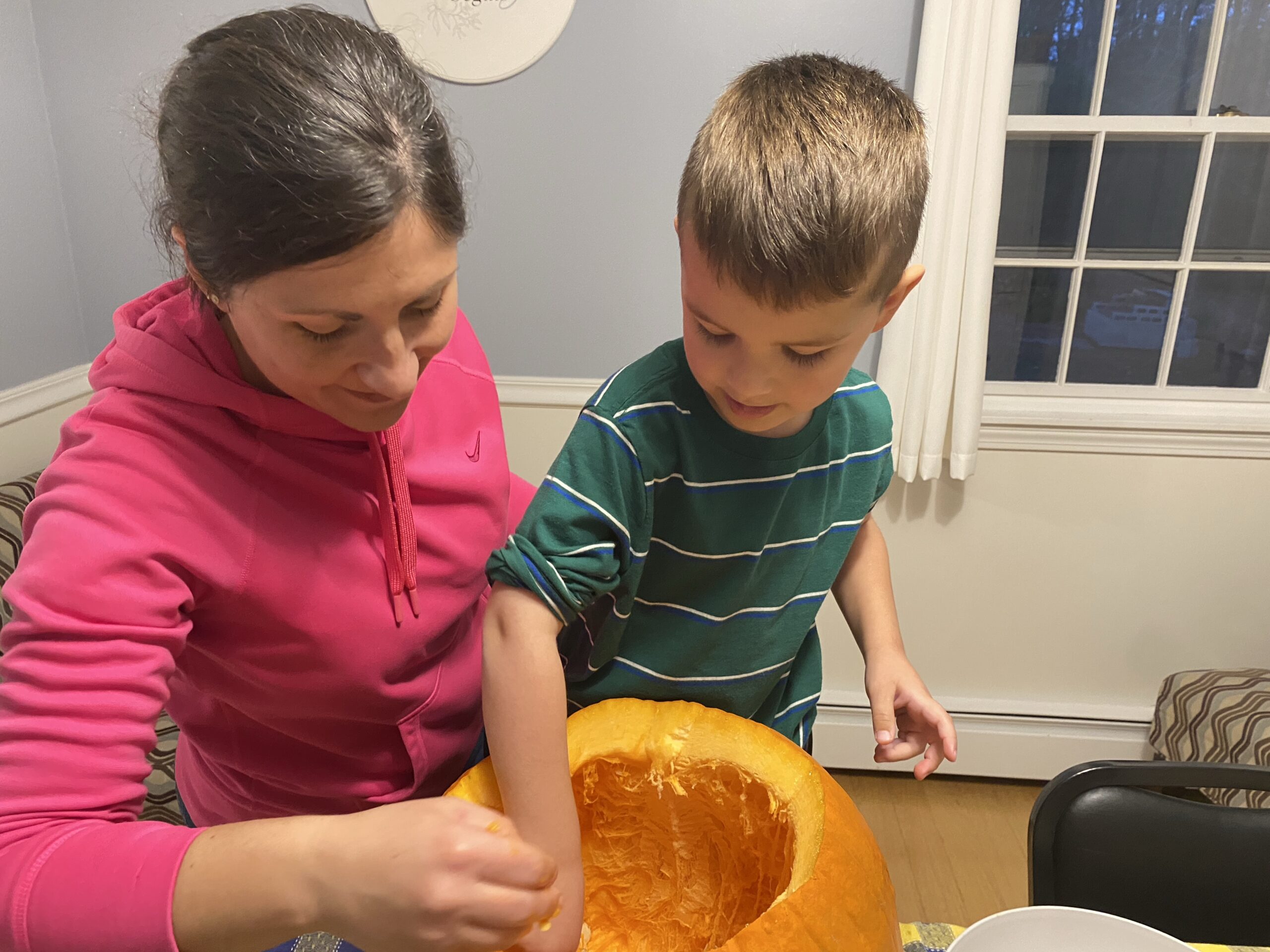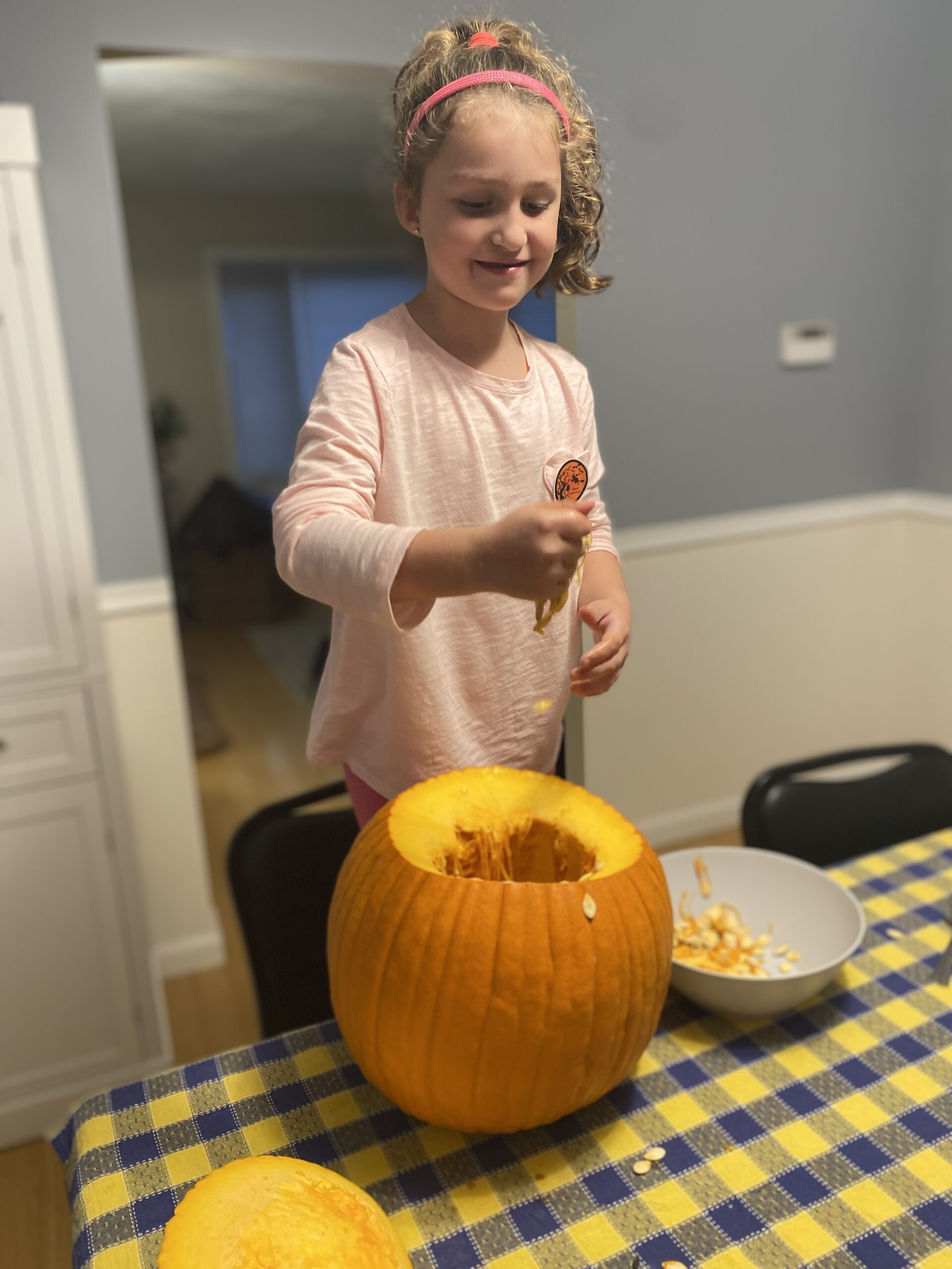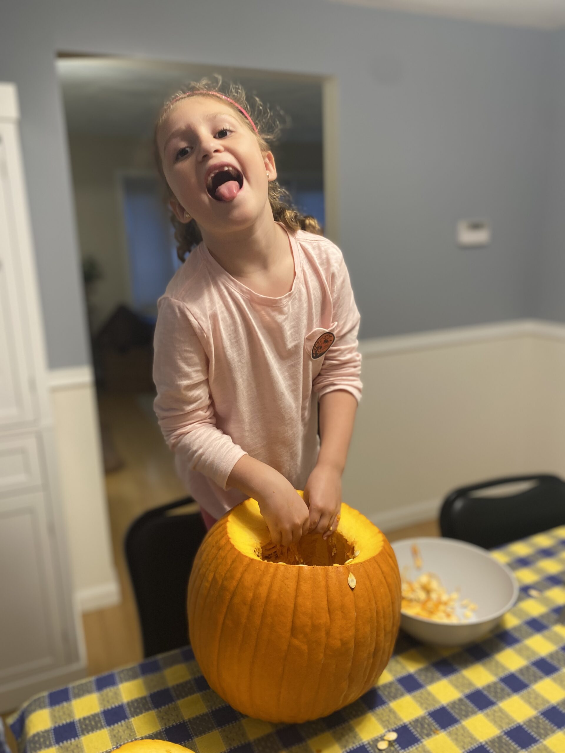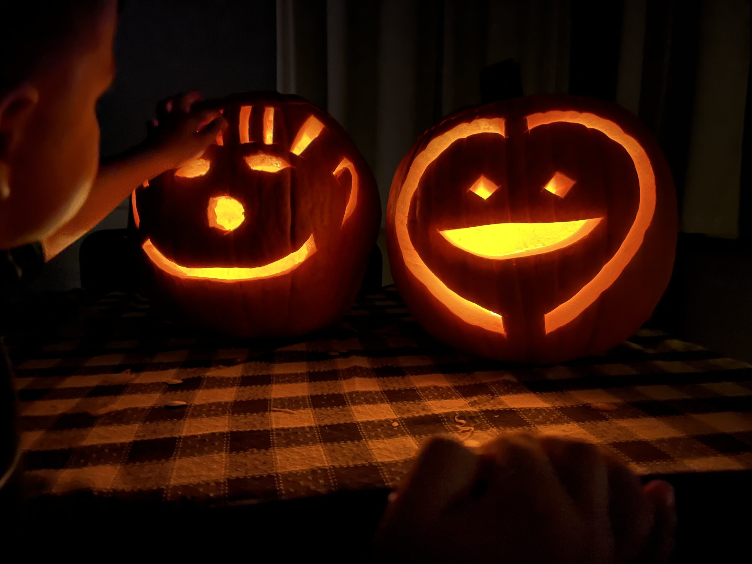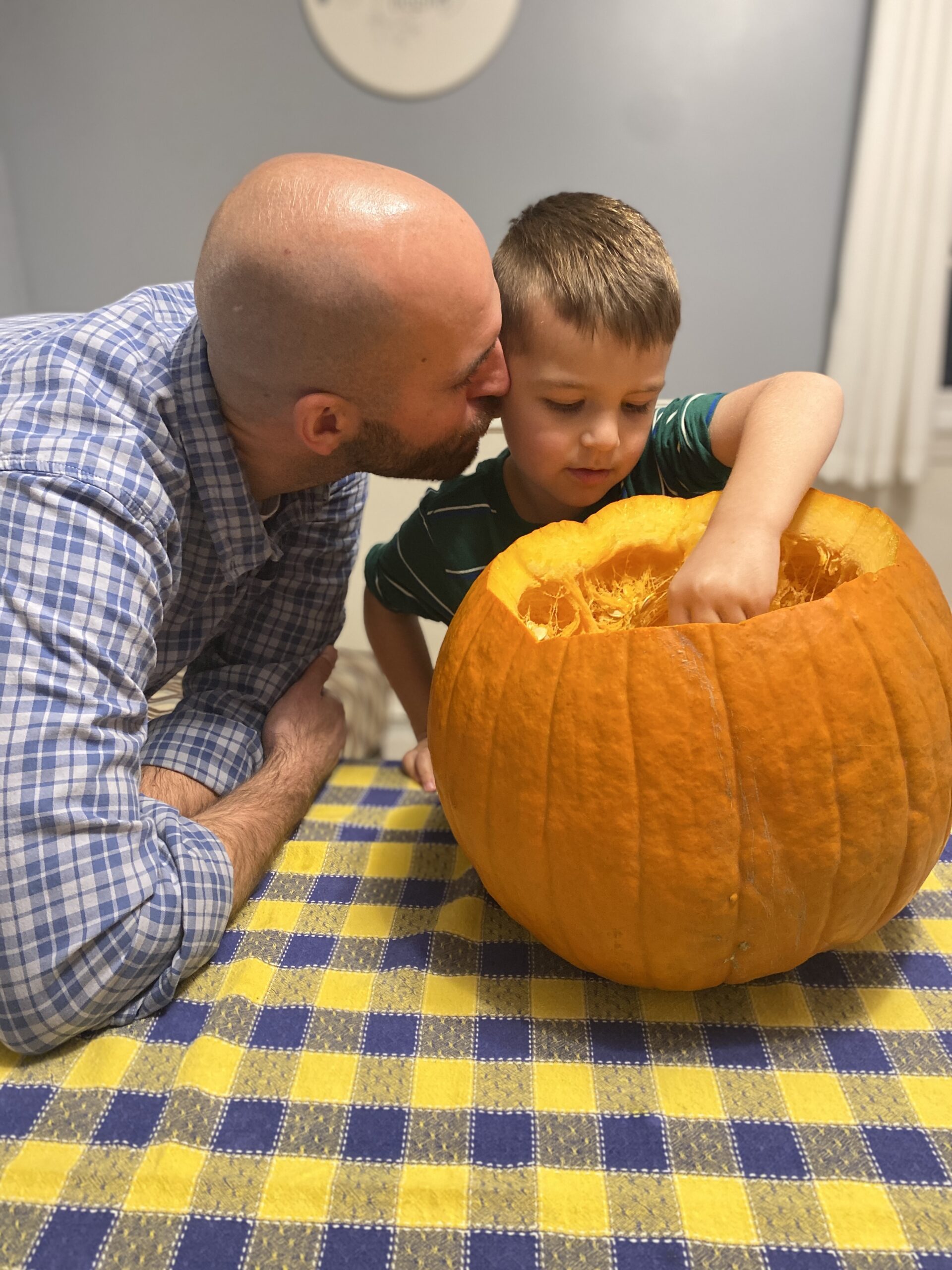 He drew his own face on the pumpkin and really liked how it turned out. 🙂