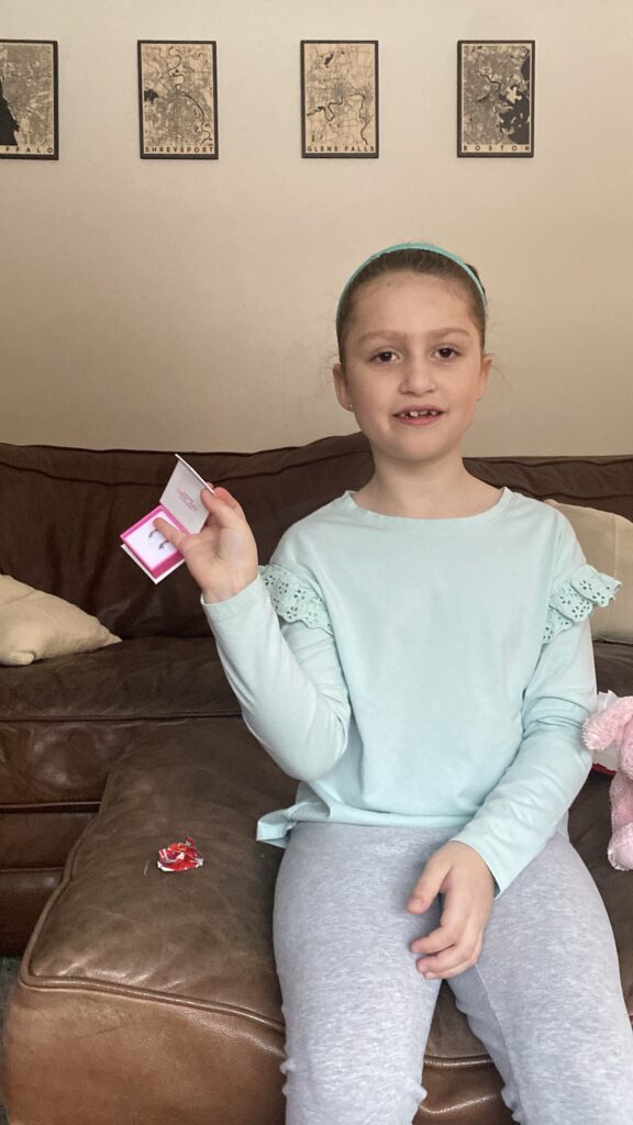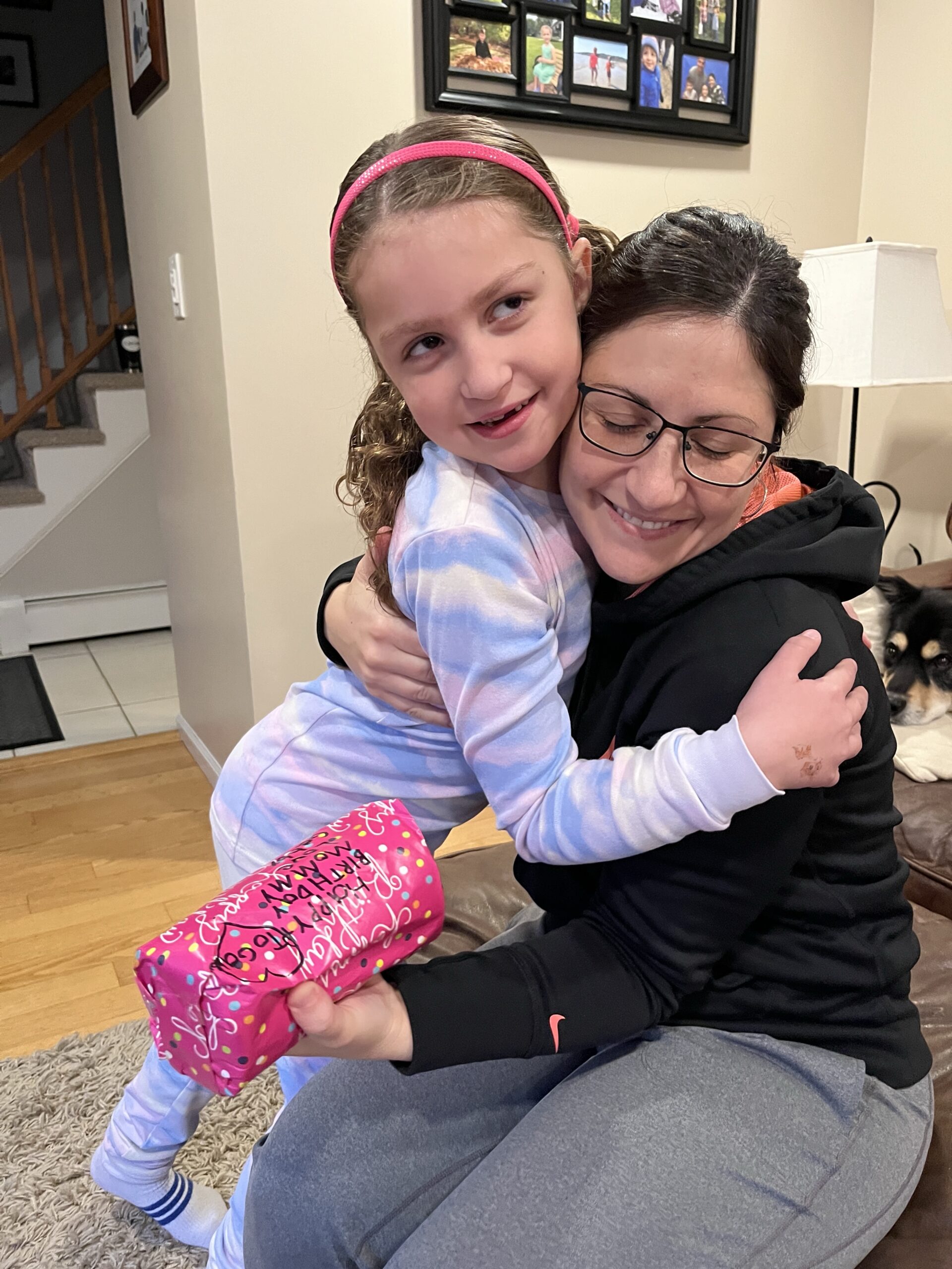 Presents before school! Some beautiful rainbow heart hoops. 🥰