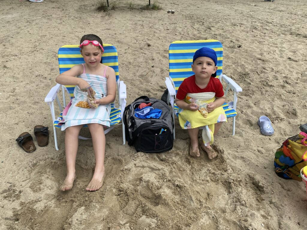Once they were tired of the sand, they explored the water. Sam enjoyed it so much, it was tough to get him to come out… 🤣