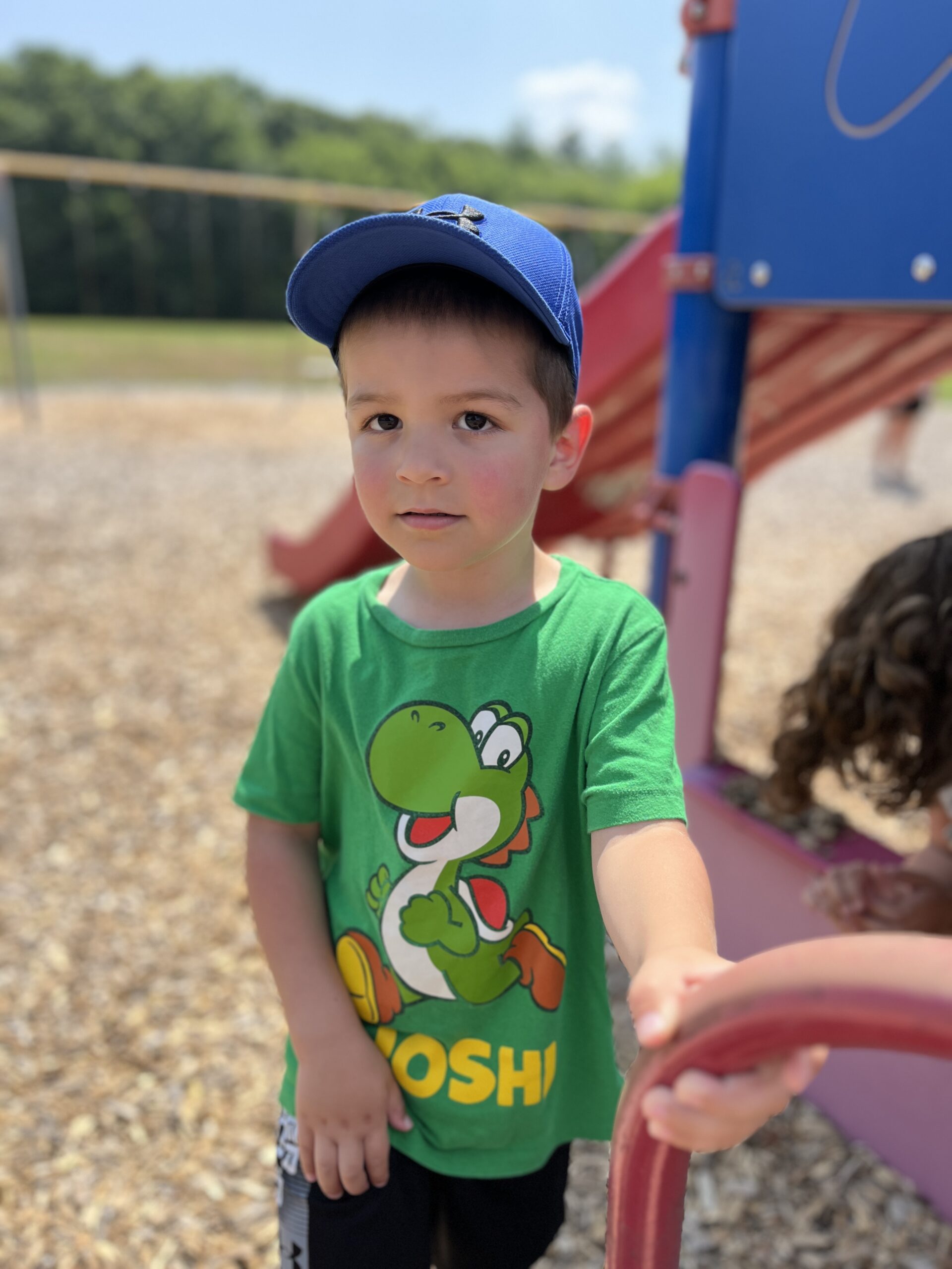 He was a little sad to go in alone, but he made the transition, and was soon inside having fun with the other kids. ❤️