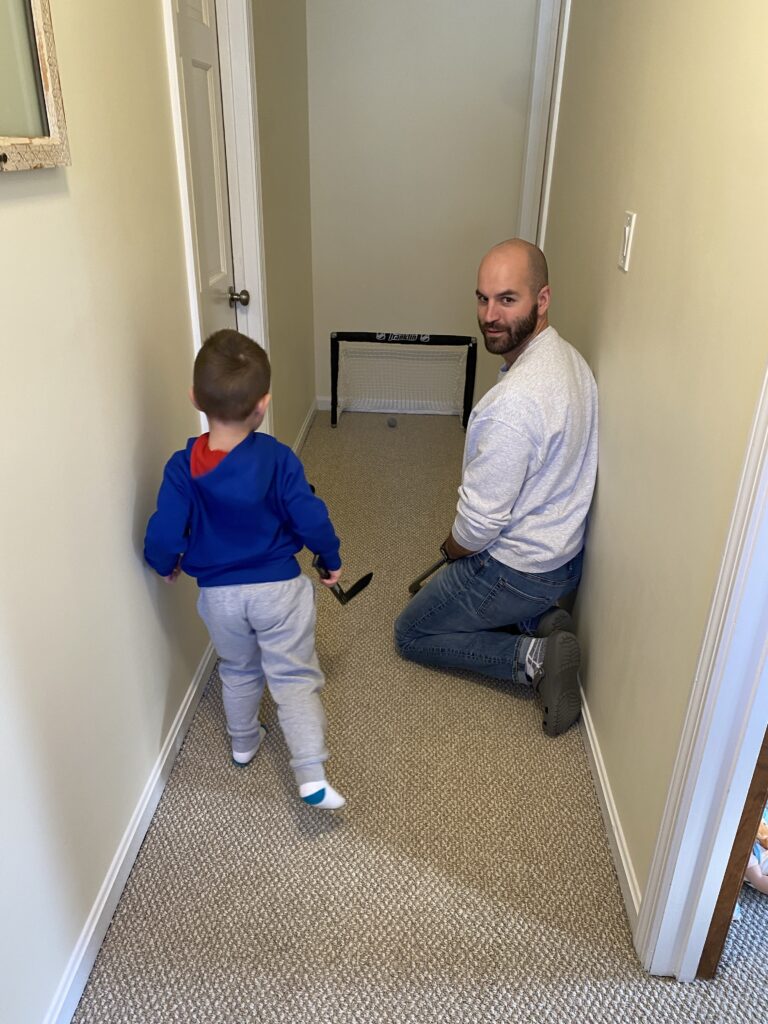 Then her first time with a hockey puck, and she hit the bucket several times!