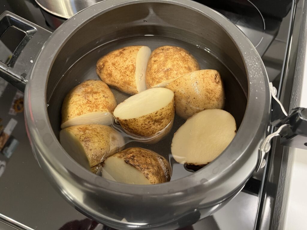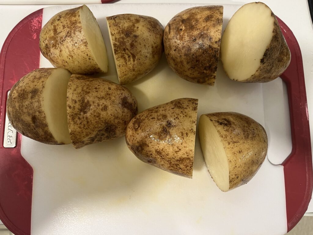 Our first time cooking potatoes in the pressure cooker. Worked pretty well!