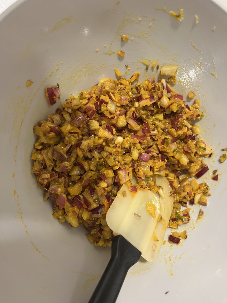 Other ingredients were tumeric, olive oil, salt, ginger, and garlic. And cilantro, which we forgot!