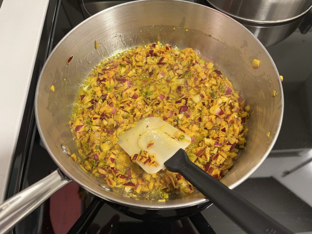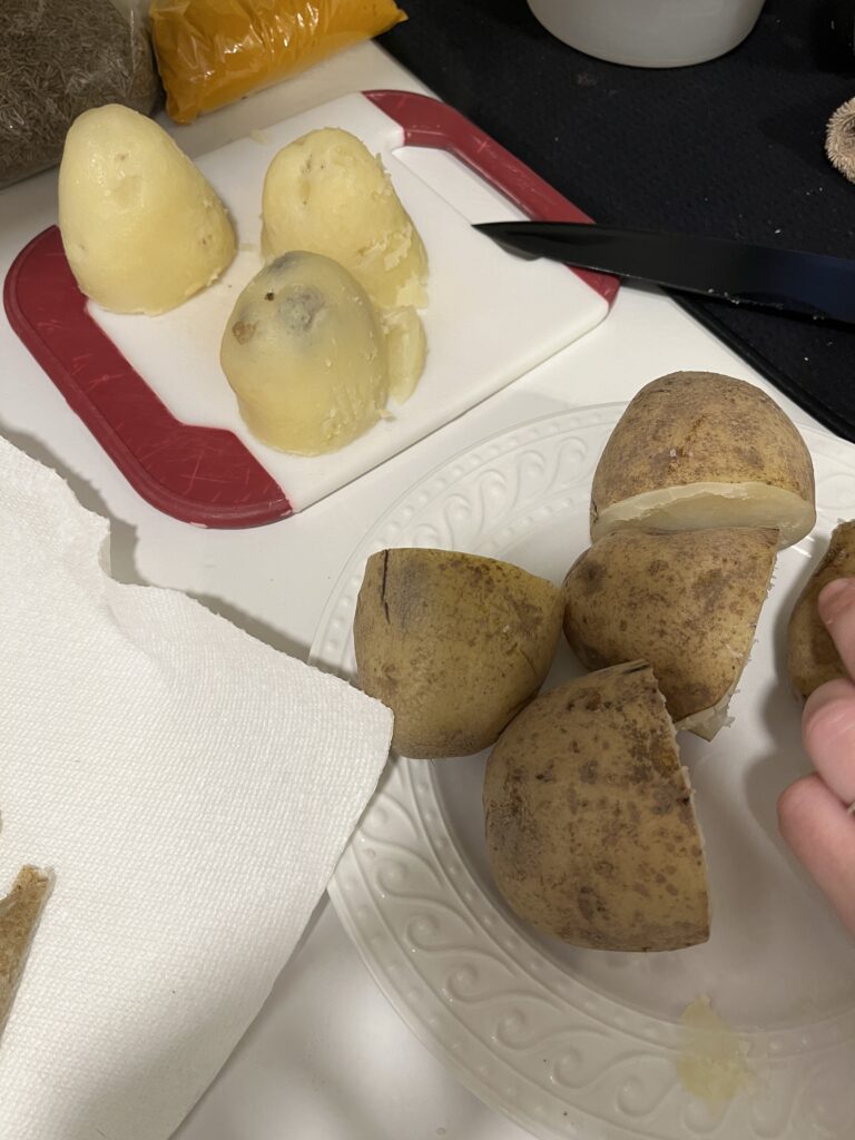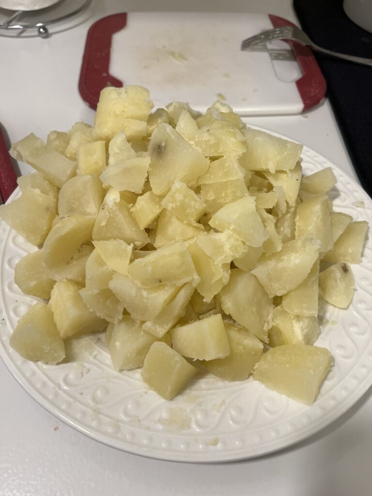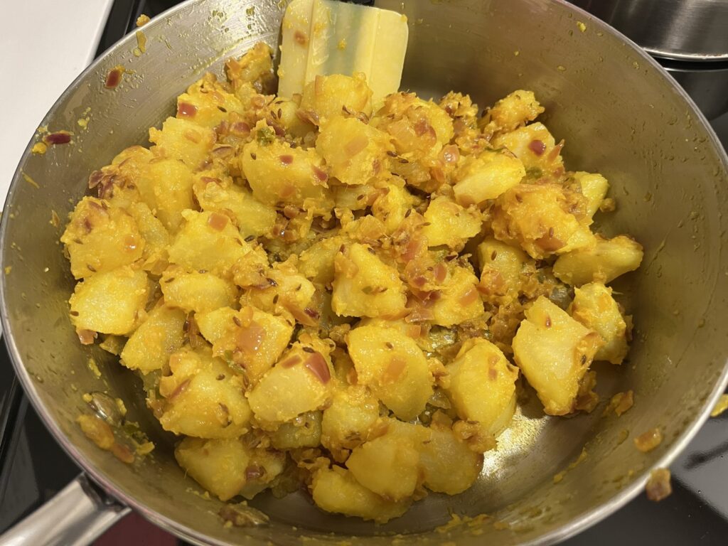 We attempted to make our friend Kedar’s spicy potatoes recipe. 🙂