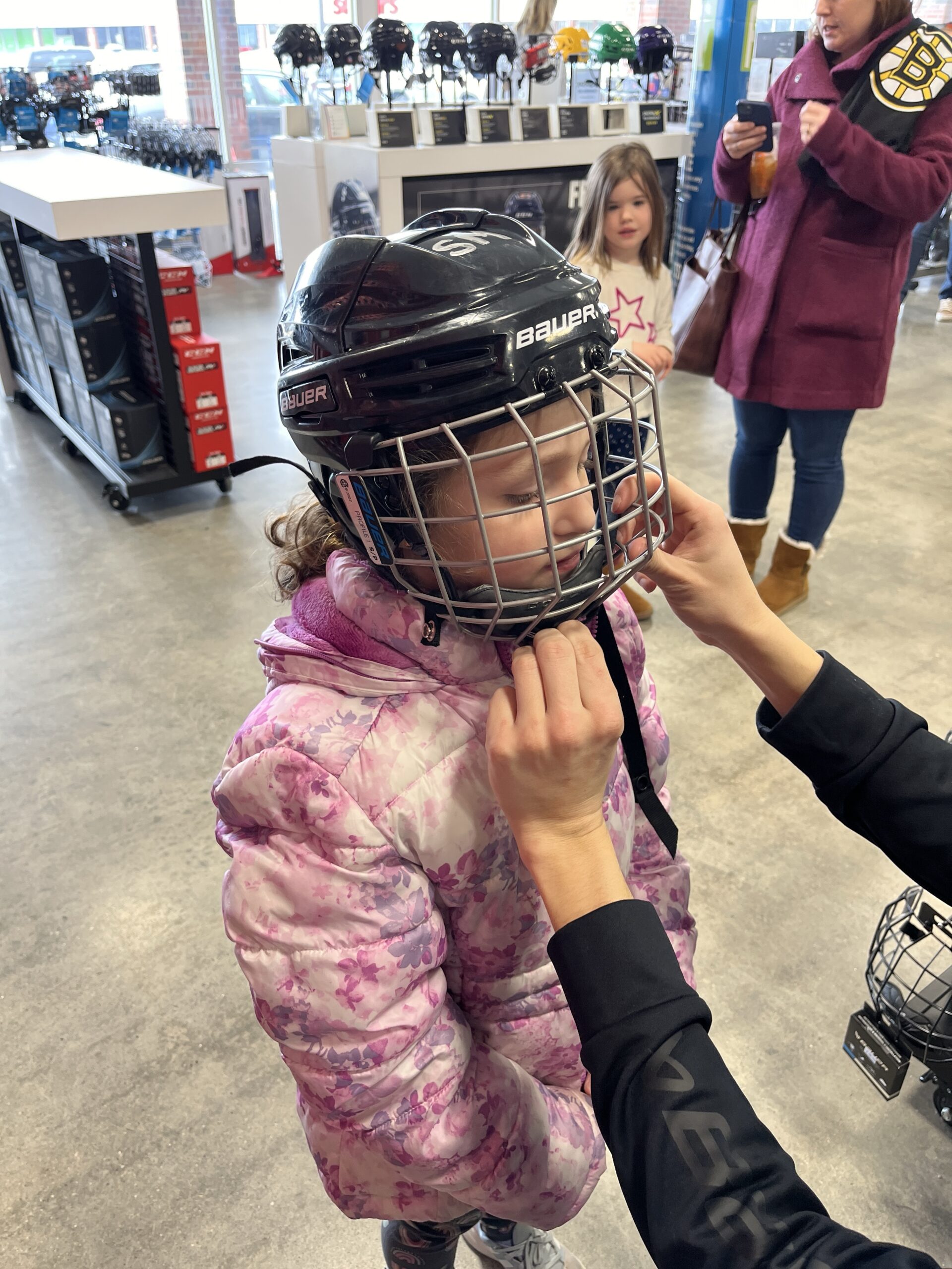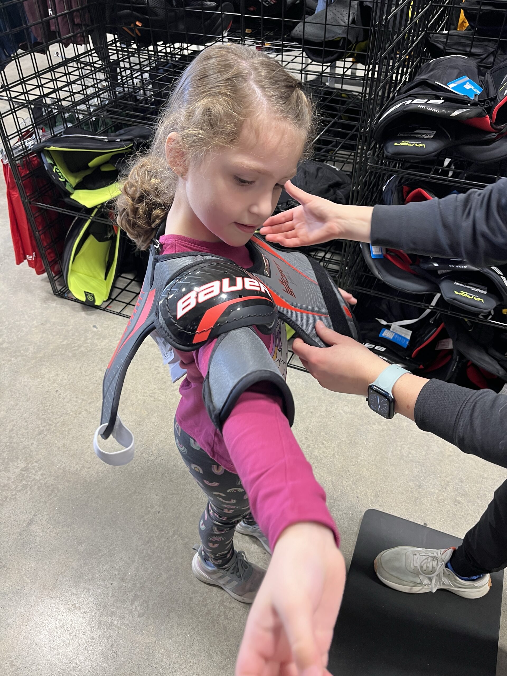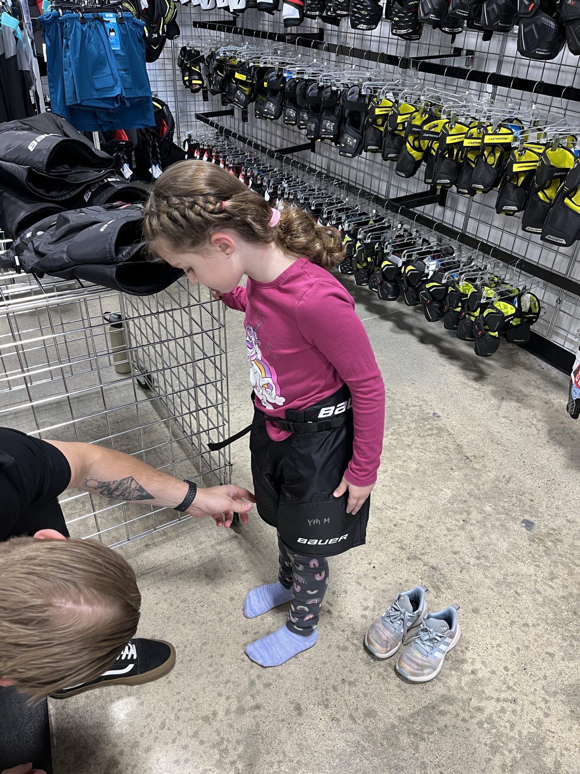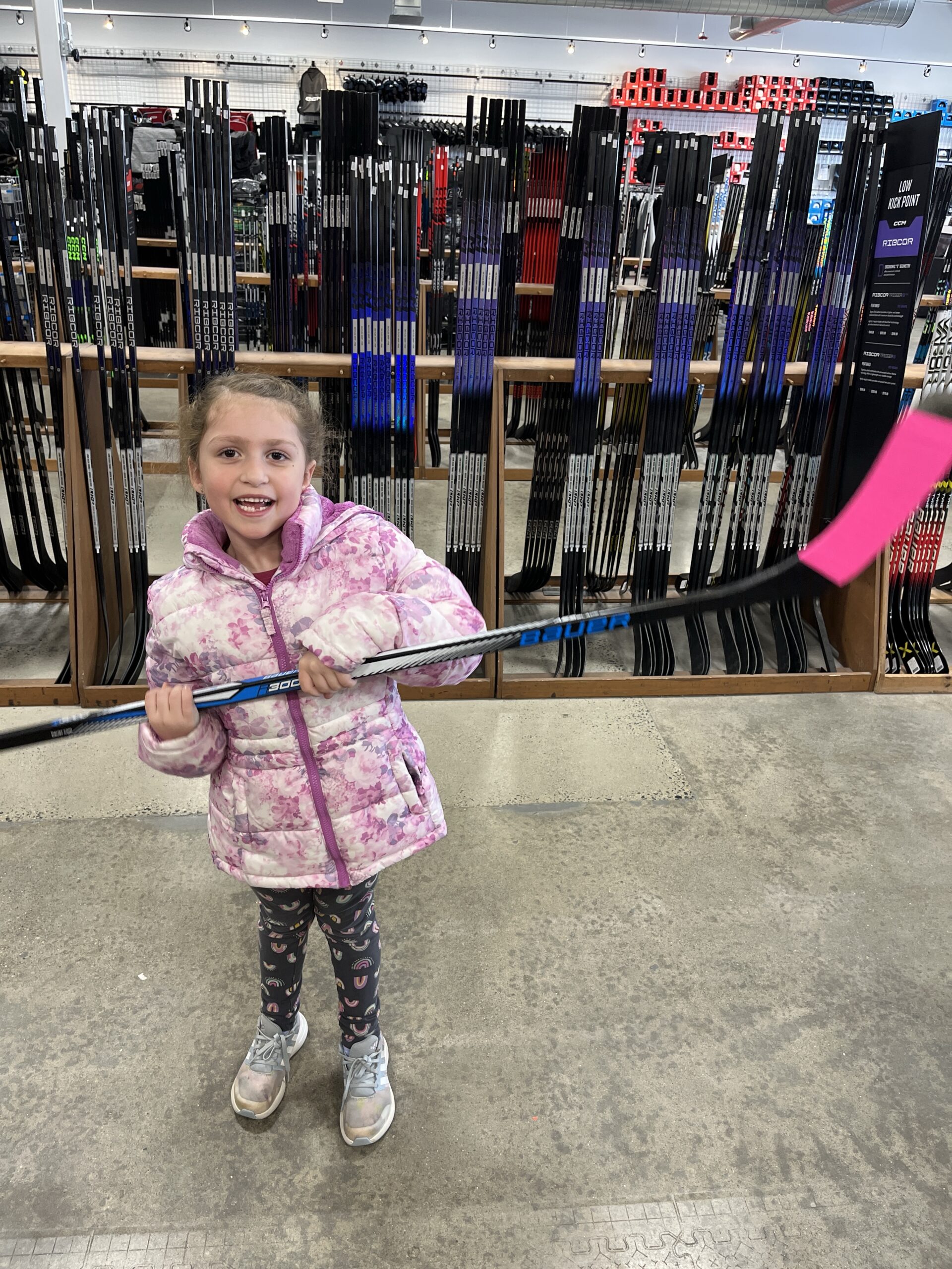 Gabby’s so excited to get out on the ice with a stick in her hands! Her fitting (included in the program) was today!