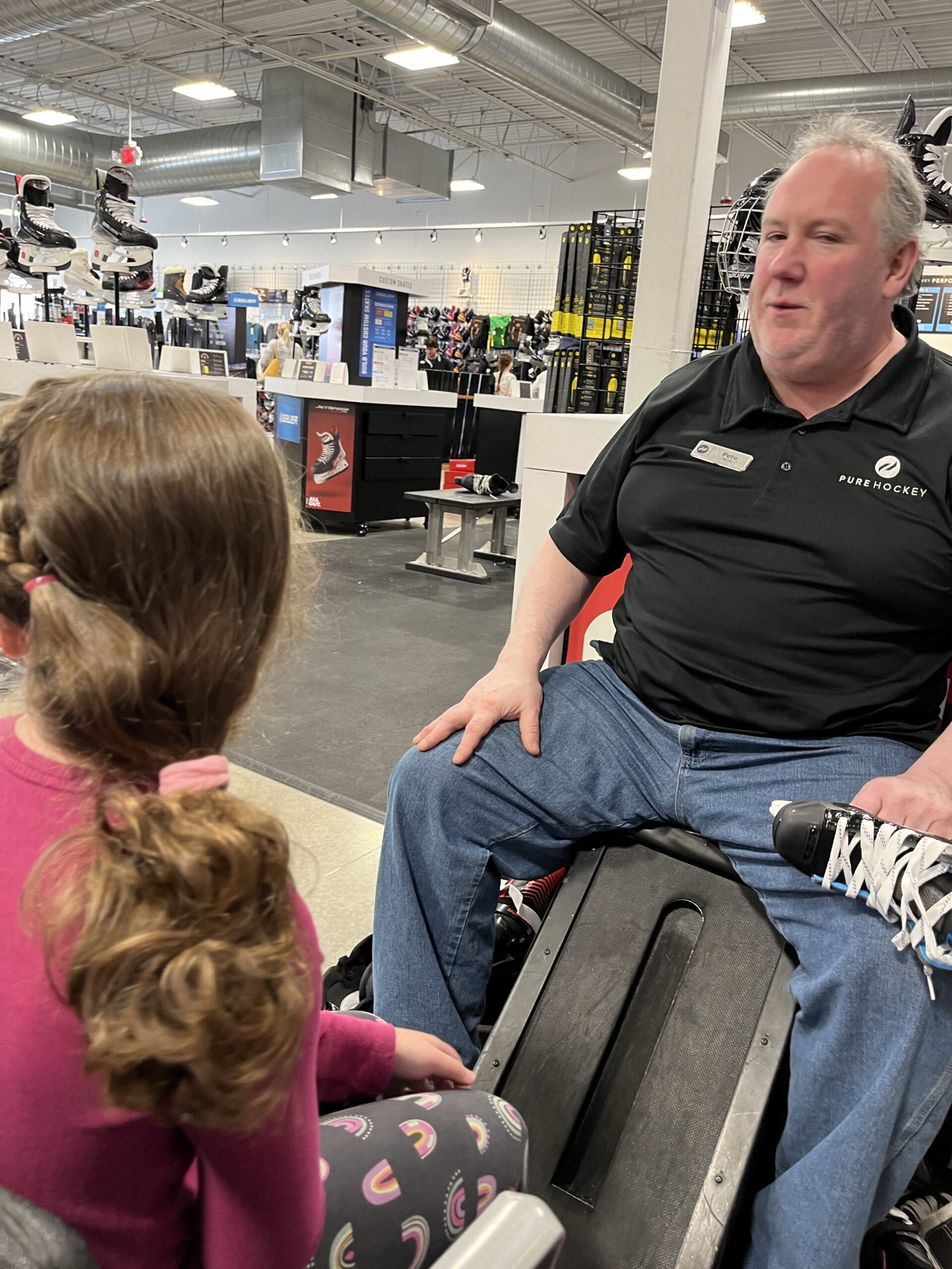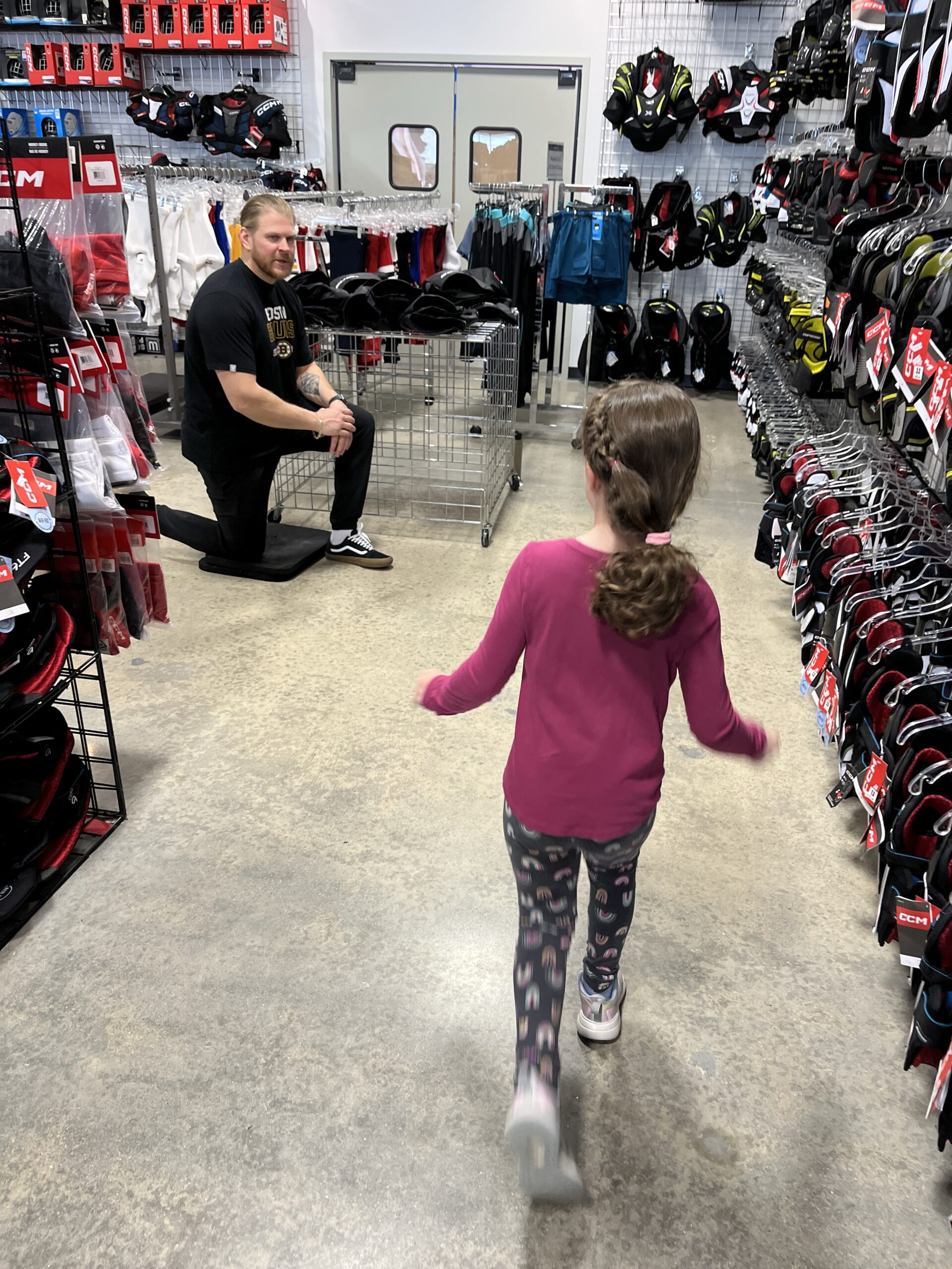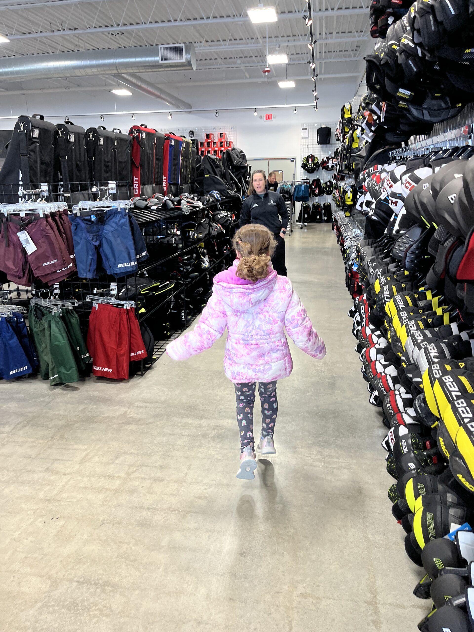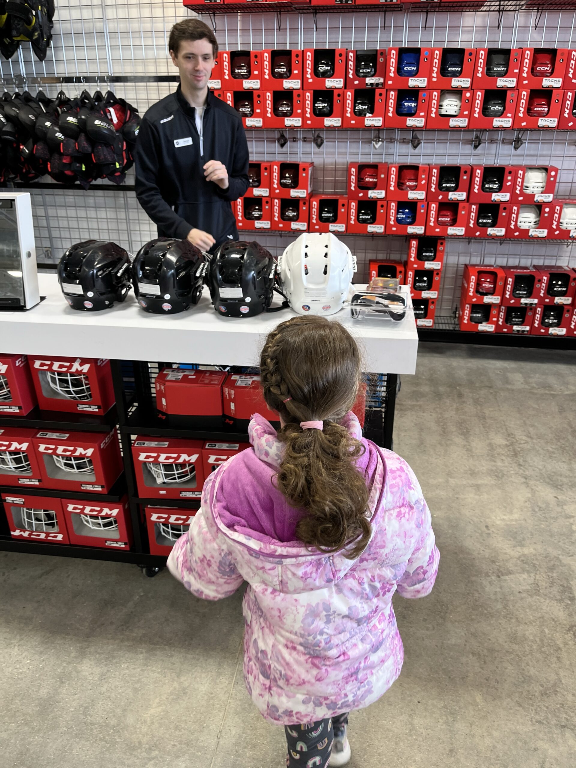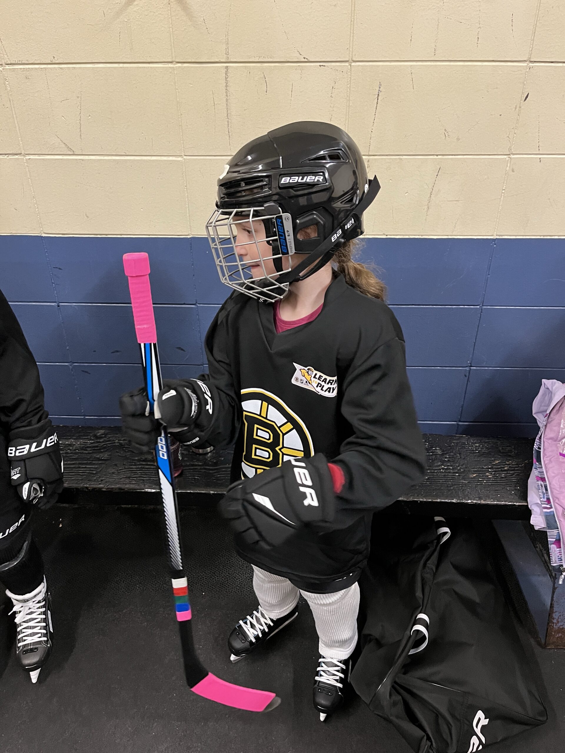 Gabby’s so excited to get out on the ice with a stick in her hands! Her fitting (included in the program) was today!
