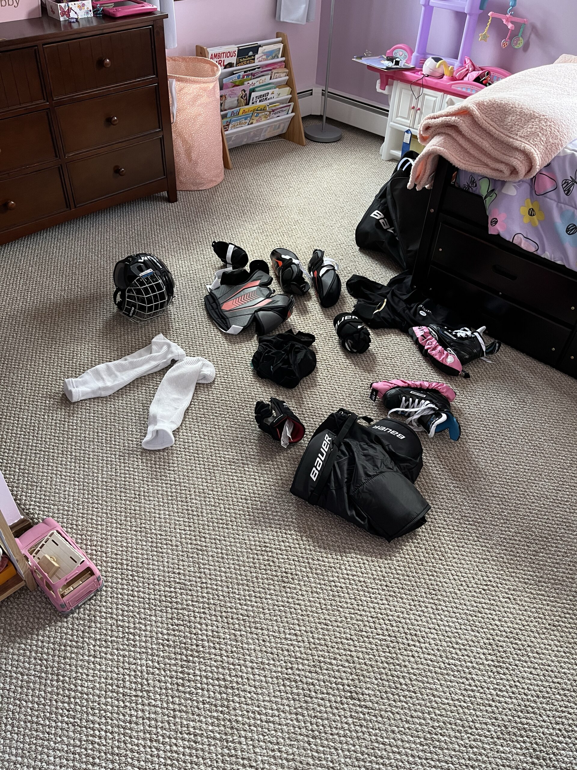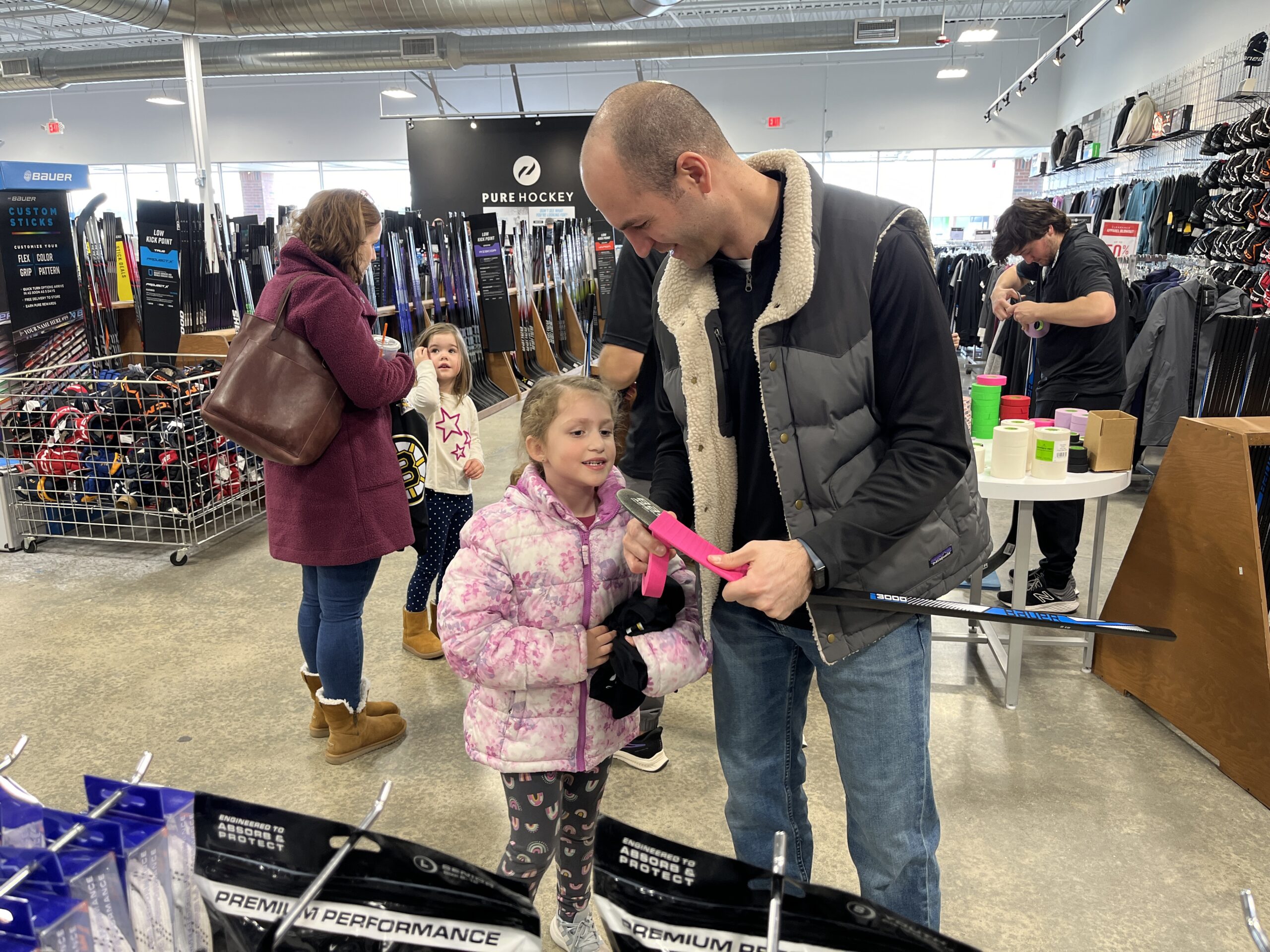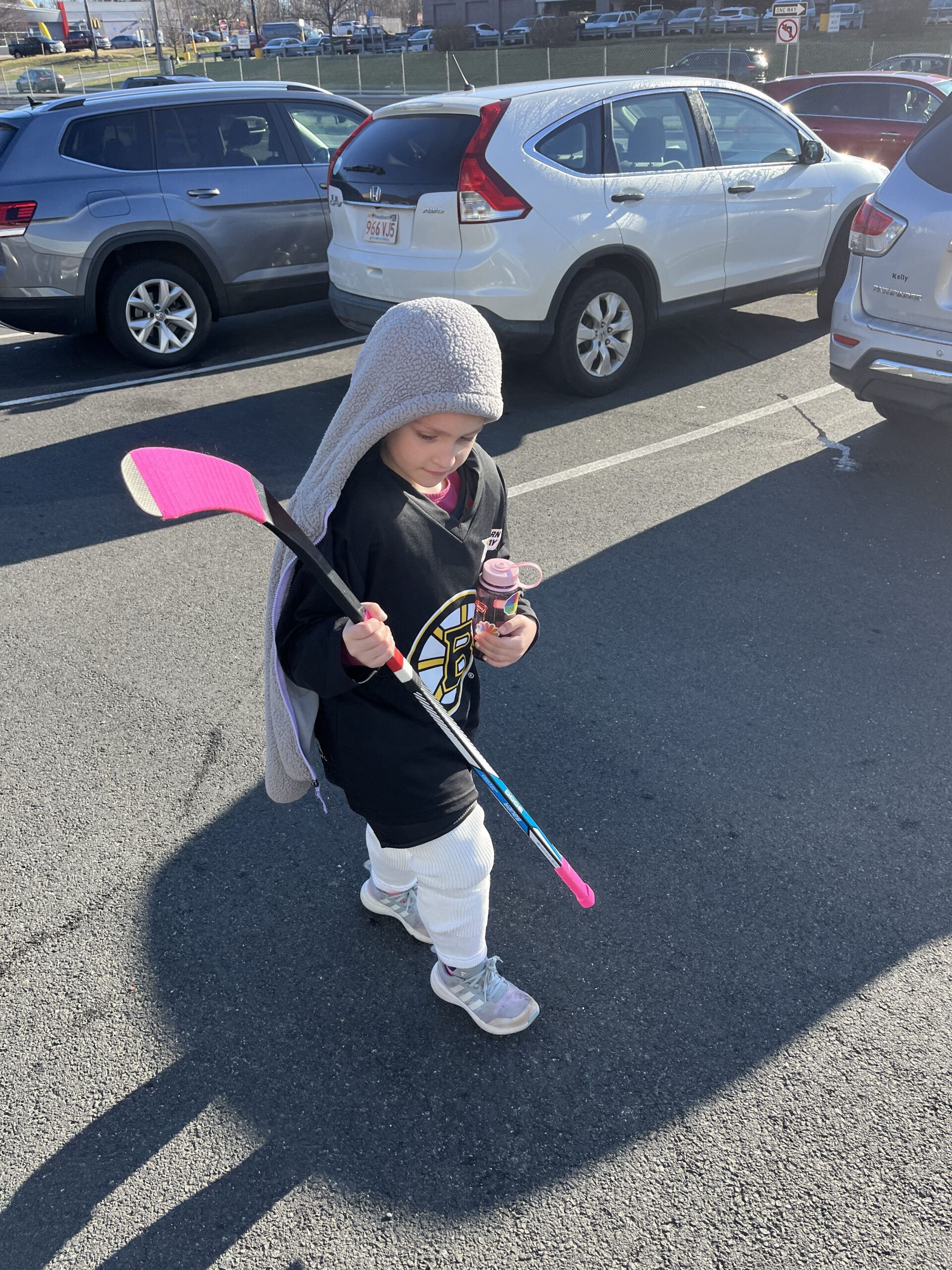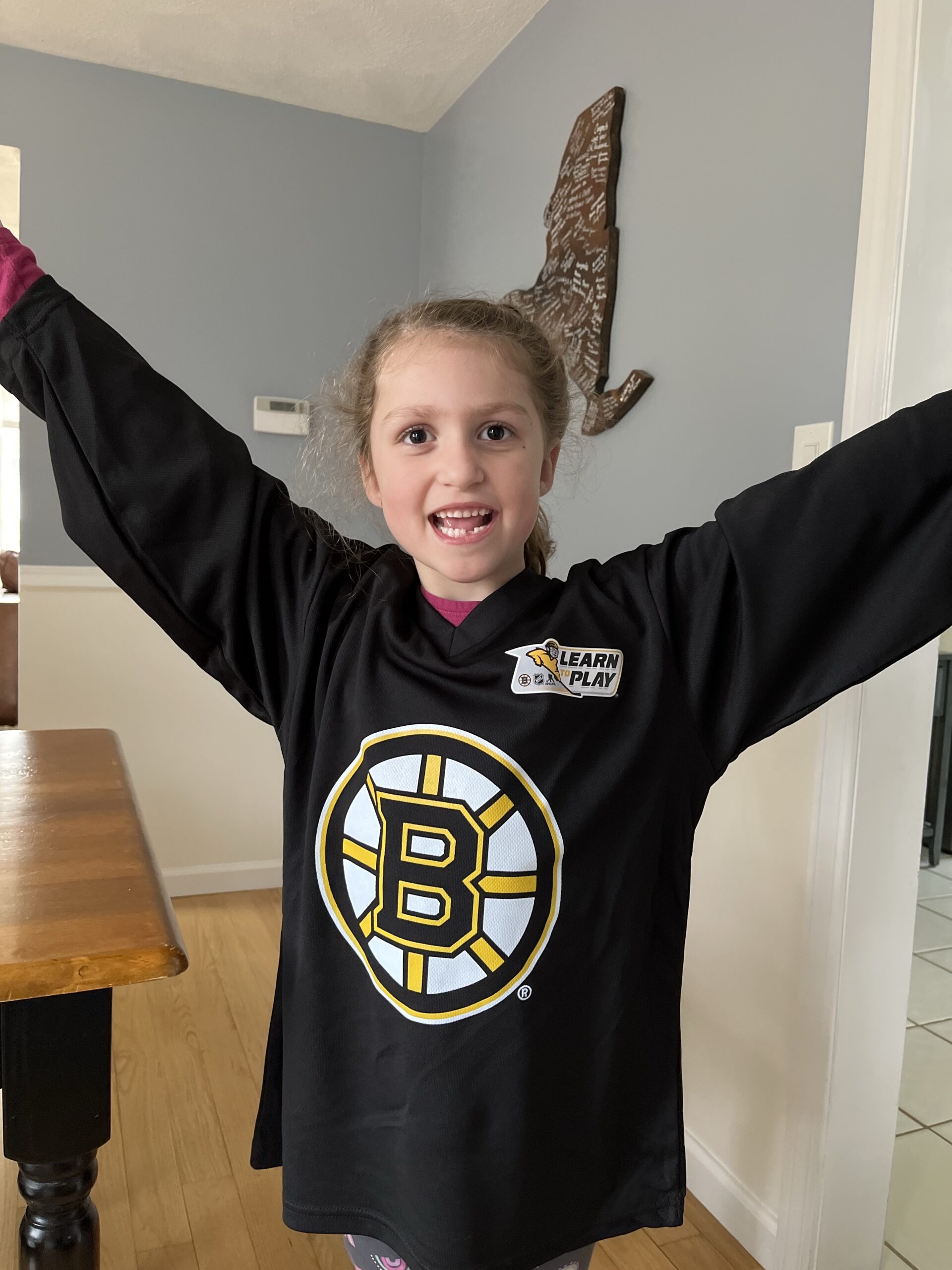 Gabby’s so excited to get out on the ice with a stick in her hands! Her fitting (included in the program) was today!