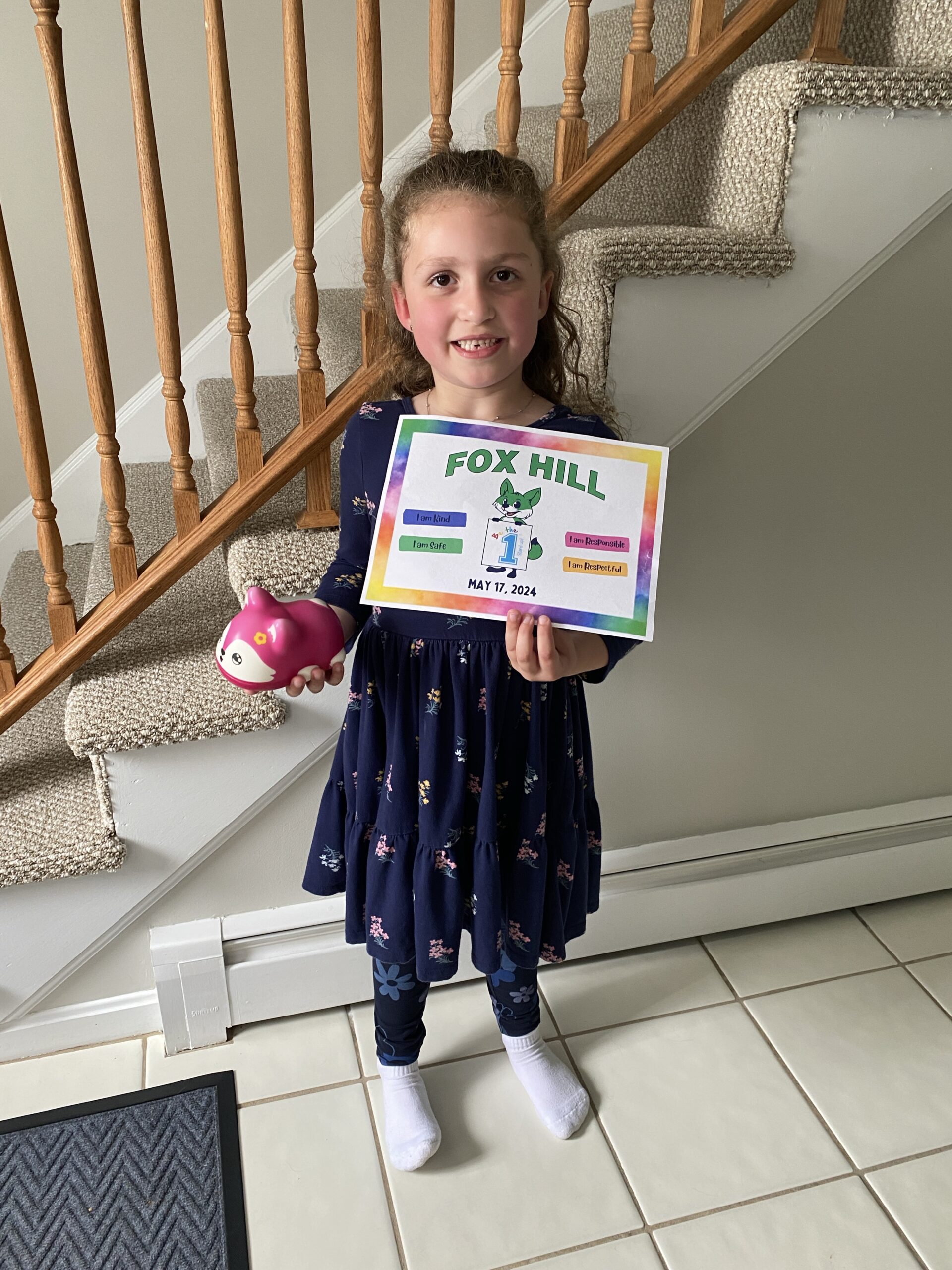 Congratulations to Gabby for being selected as “The One” from her grade who demonstrated Responsible, Respectful, Kind, and Safe behavior this week!