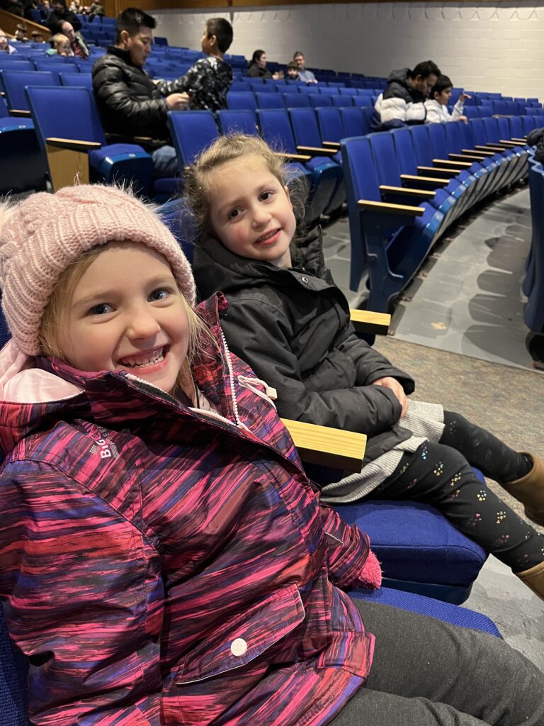 The kids waited so nicely for the auditorium to open. Maybe because they got to enjoy some yummy treats, like M&M’s! (Not pictured. :P)