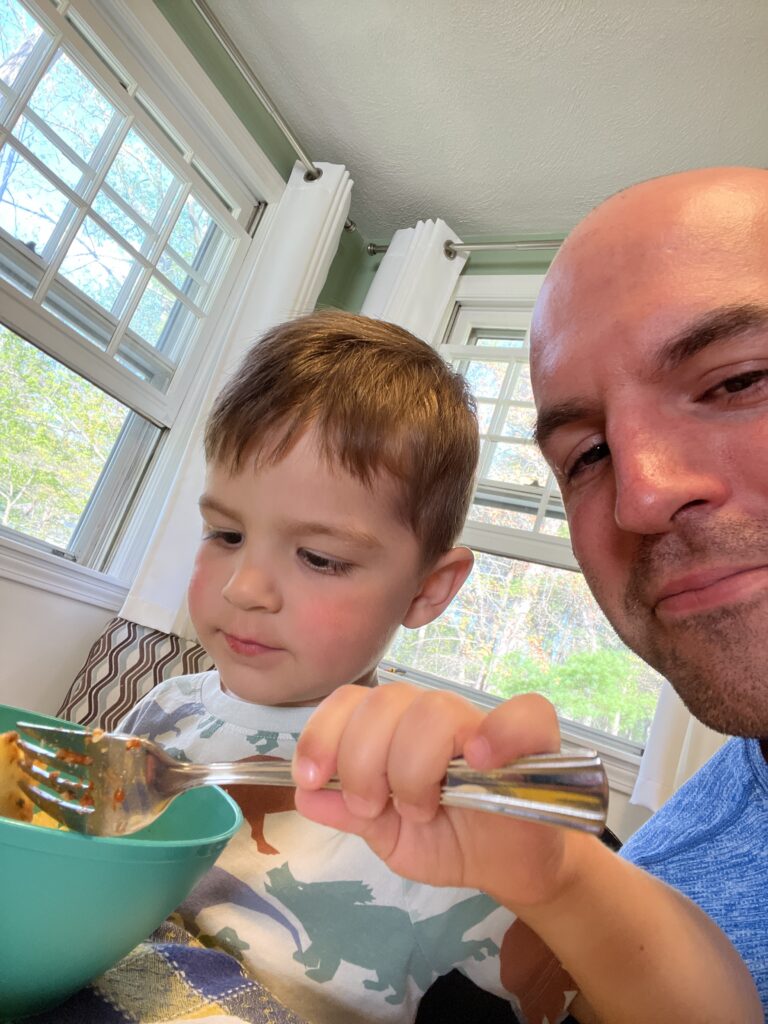 He had his favorite dinner, mommy’s homemade Chicken Nuggets!