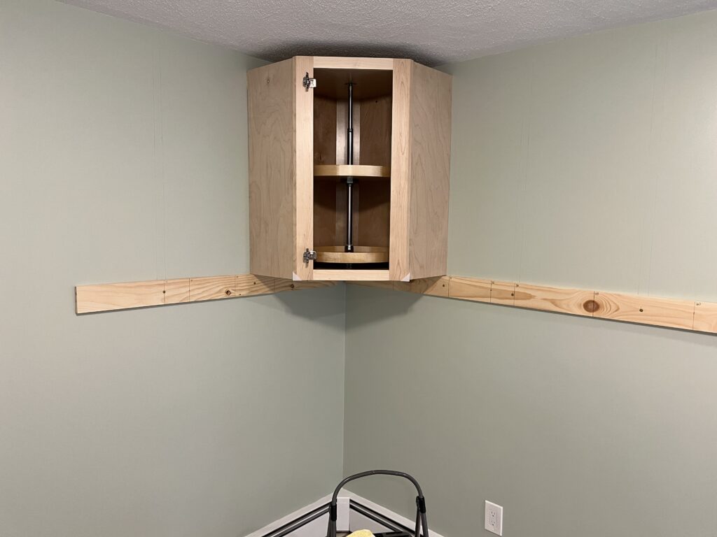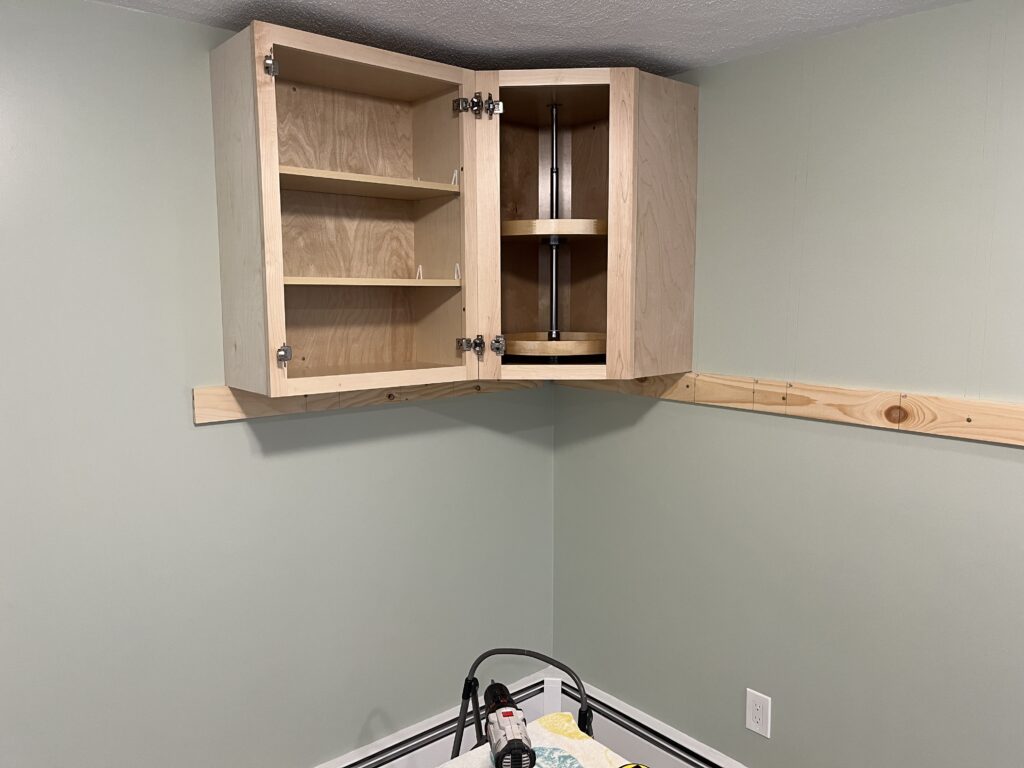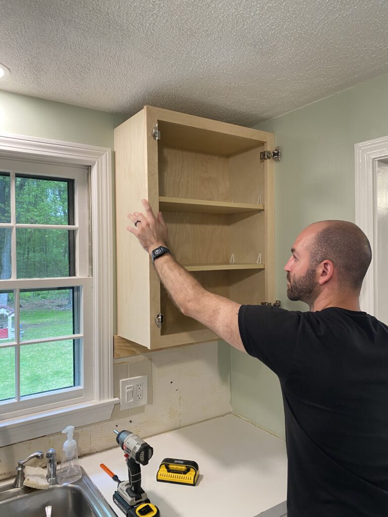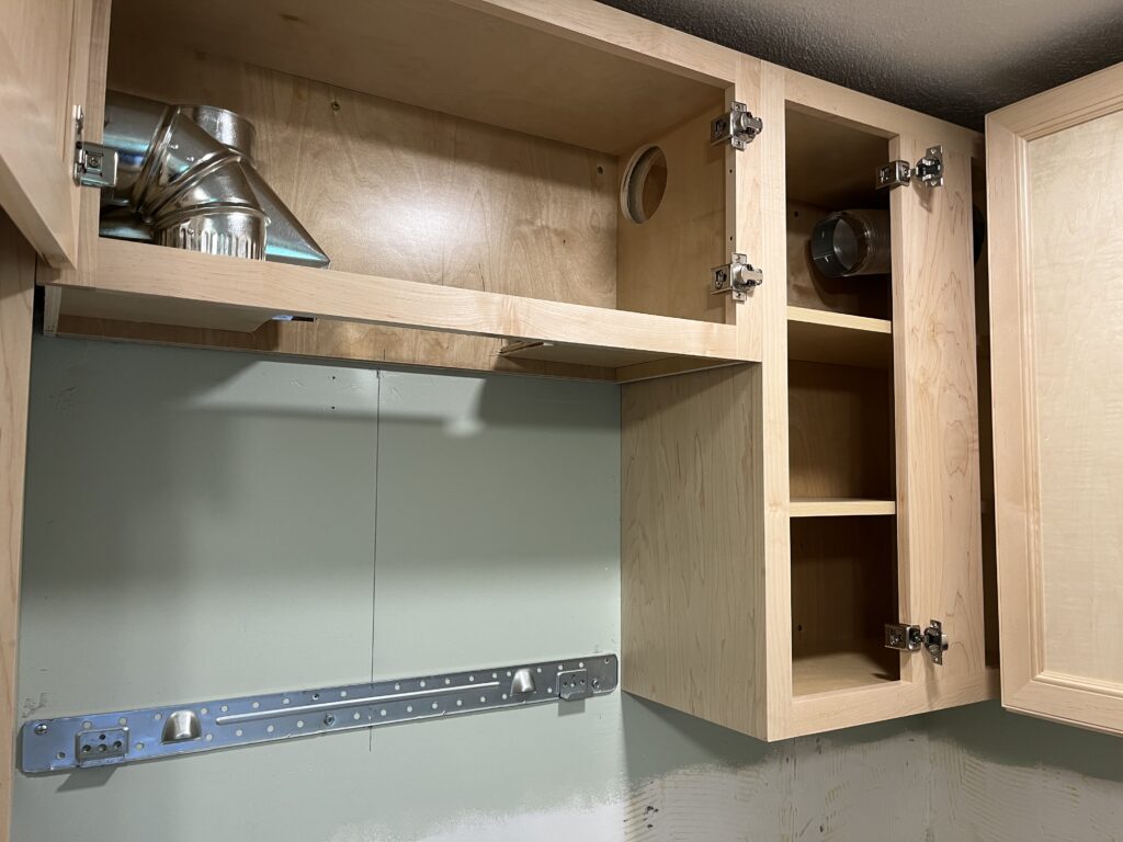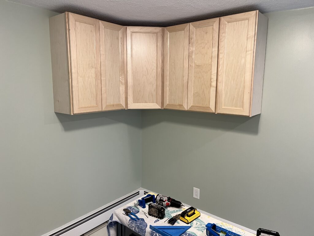 Daniela was always working ahead with drywall and paint prep so we could hang a cabinet or two, as time allowed. We always put the fresh cabinet immediately “into service”, so the next one could be emptied and removed.