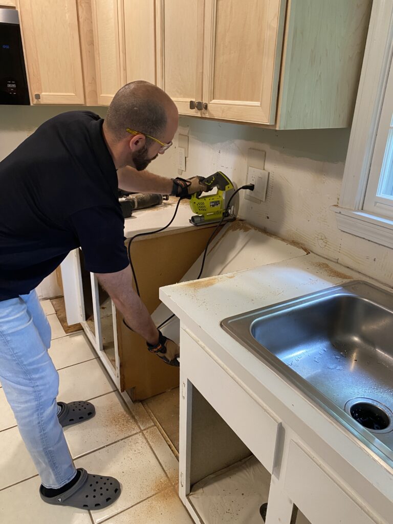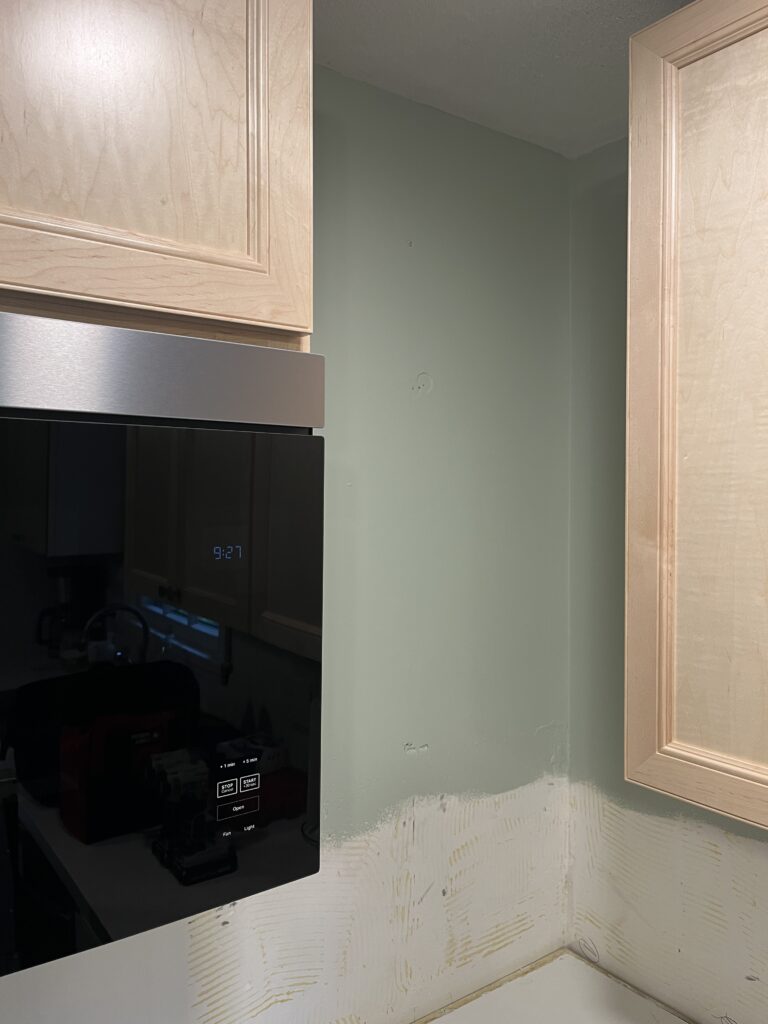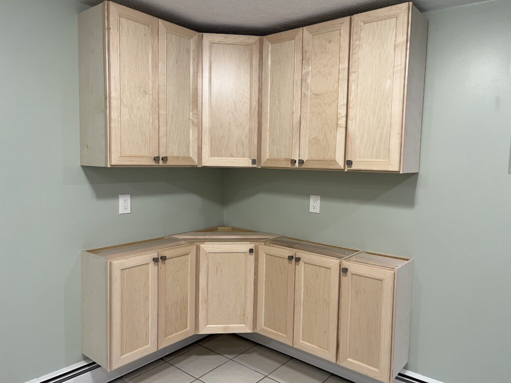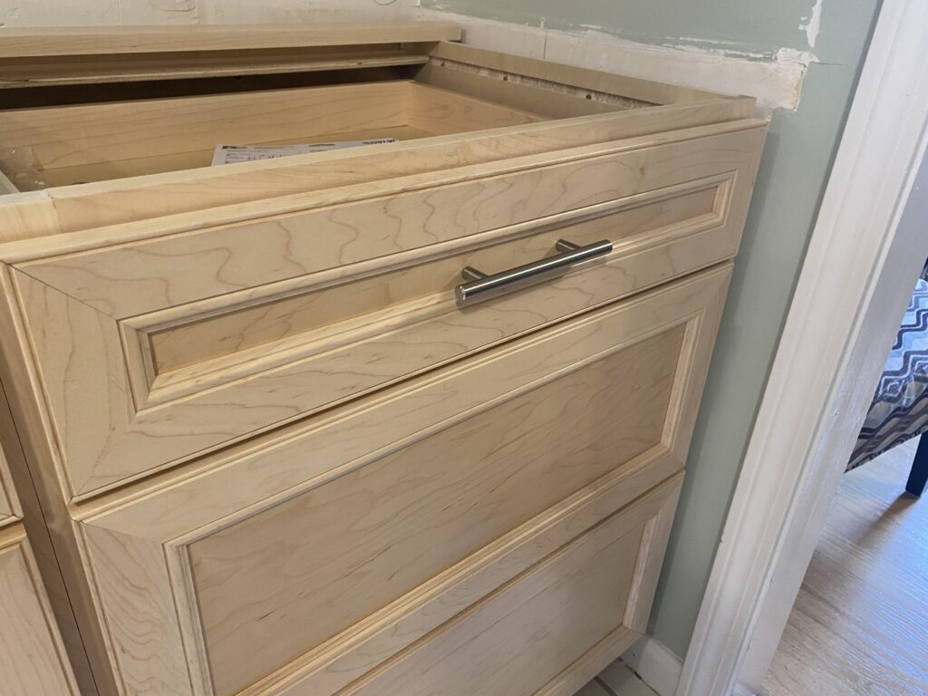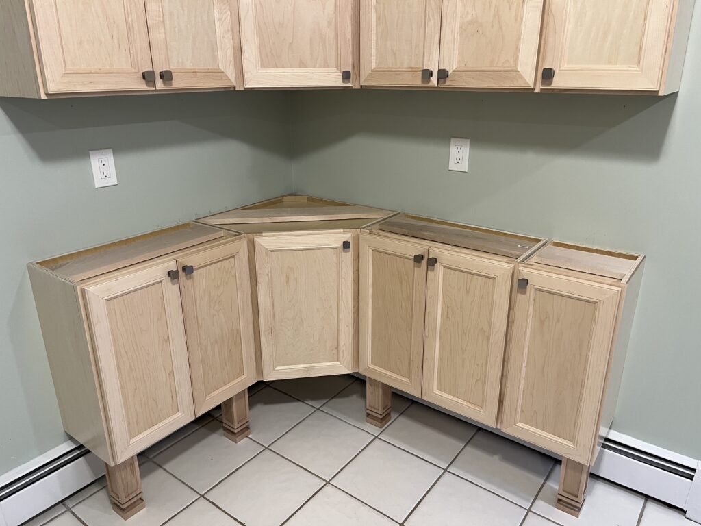 Daniela was always working ahead with drywall and paint prep so we could hang a cabinet or two, as time allowed. We always put the fresh cabinet immediately “into service”, so the next one could be emptied and removed.