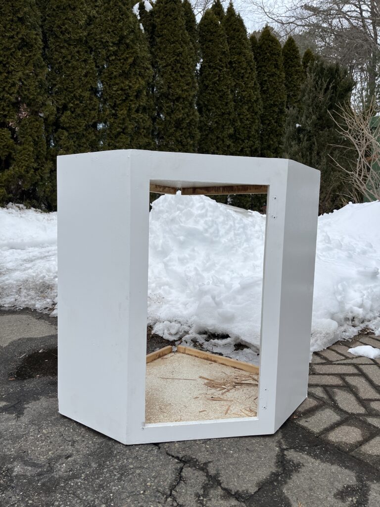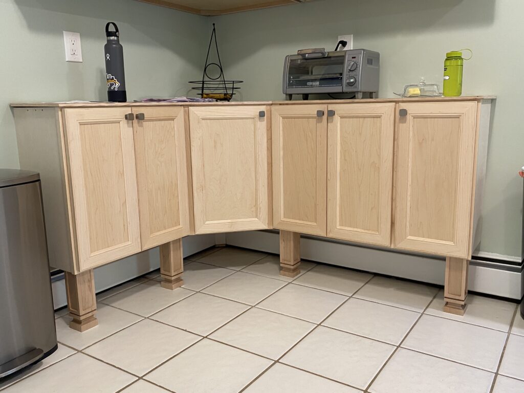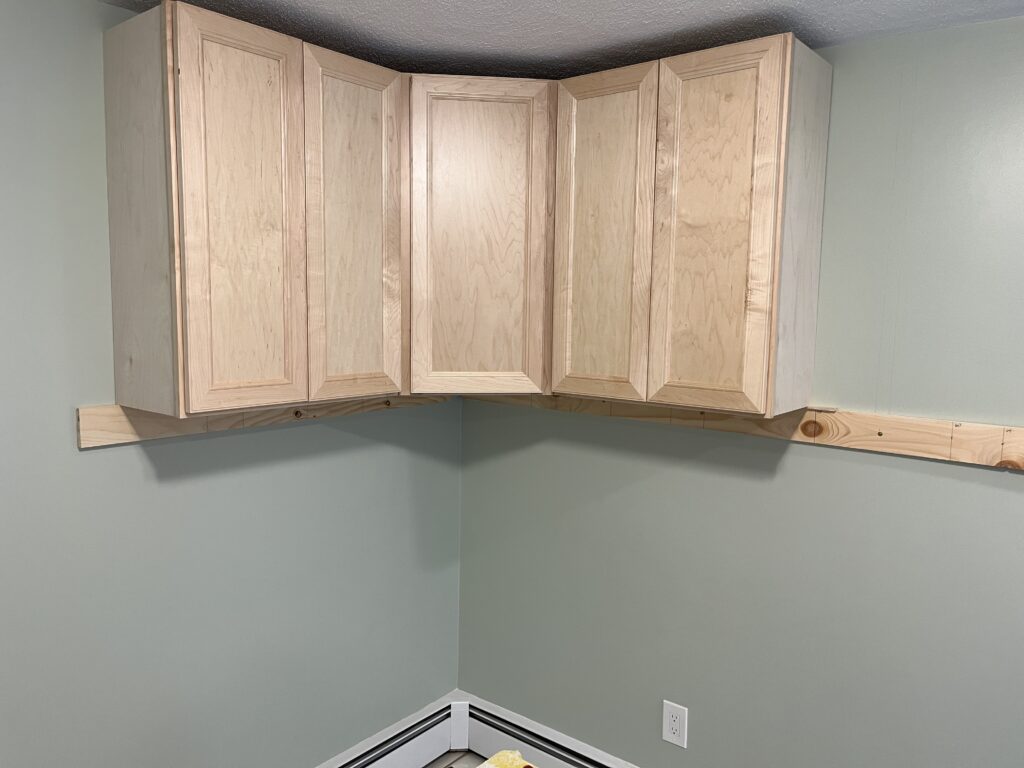We hung ‘upp-ahs’ as ‘low-ahs’ (in a Boston accent) to create our base cabinets on the interior wall.