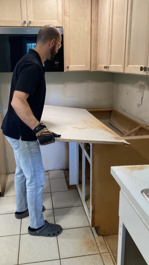 After the 4th of July, we could finally pull the trigger on demo’ing what remained to be perfectly timed with the delivery of our next piece of granite.