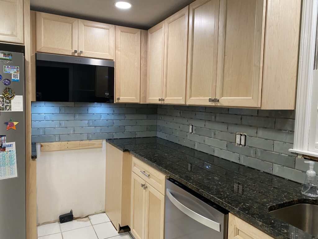We are so proud of Daniela for learning how, and doing a great job, with the backsplash! Thank you!