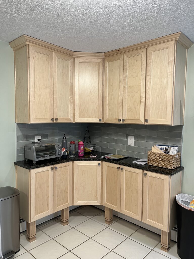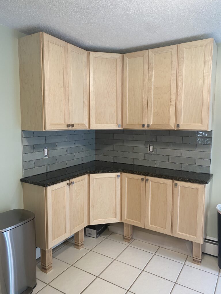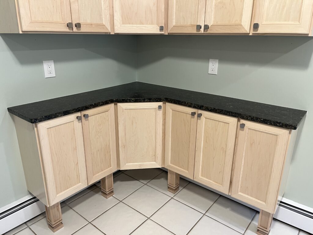 And easily the most brilliant idea of the whole project (thanks to Daniela!) was using matching maple table legs to finish the look. Ready for granite …