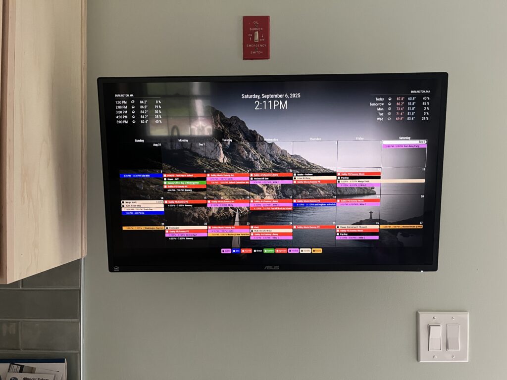 We decided to finally retire the whiteboard calendar, after more than a decade of keeping us all on the same page. Leveraging much of what we already host ourselves, we now have a digital version that is completely run by us with no dependency on Google/Apple, etc.